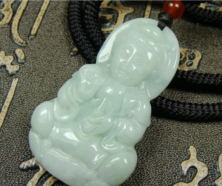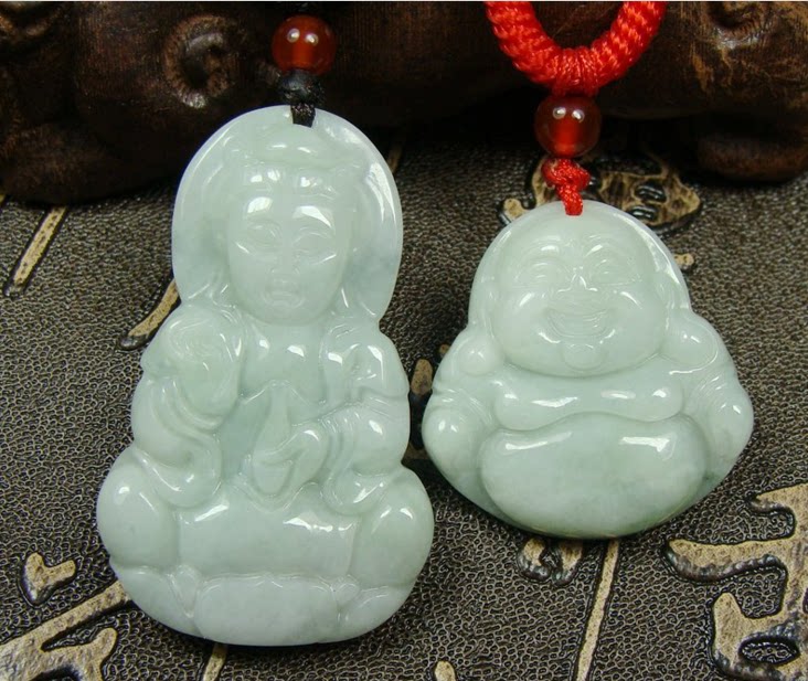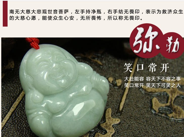 天然翡翠玉观音吊坠淡绿色弥勒佛男女情侣民族风玉坠新品挂件包邮