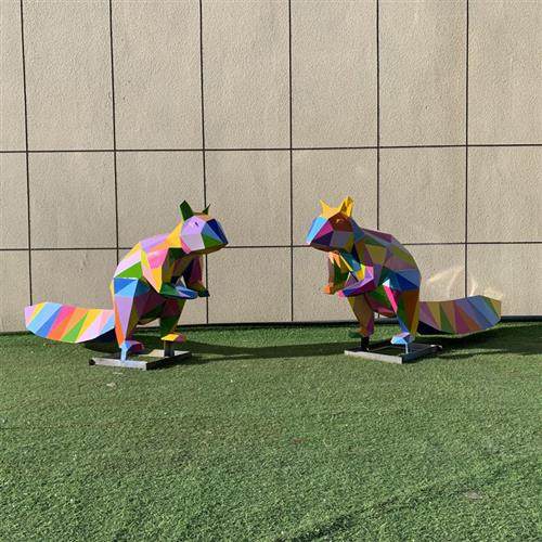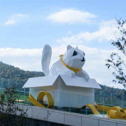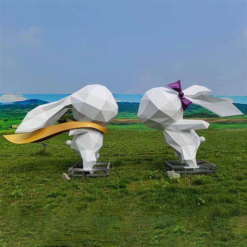 不锈钢卡通动物雕塑定制大型镂空发光切面网红熊鹿兔子长颈鹿摆件