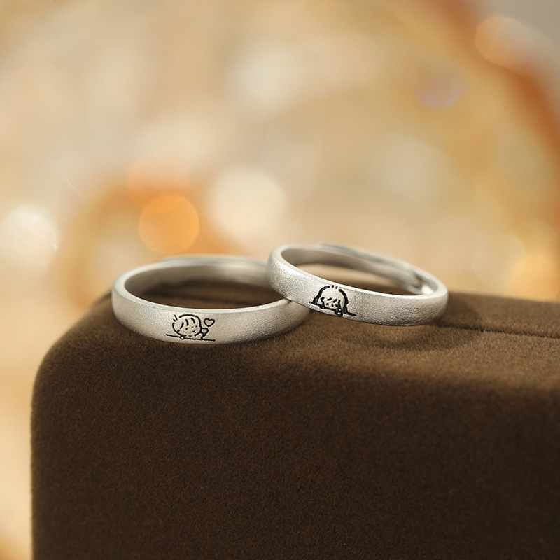 阿宝S999足银独特设计男孩女孩对戒情侣对戒可爱童趣甜美手饰