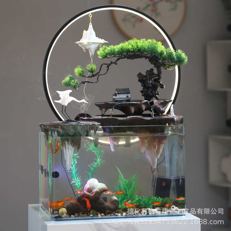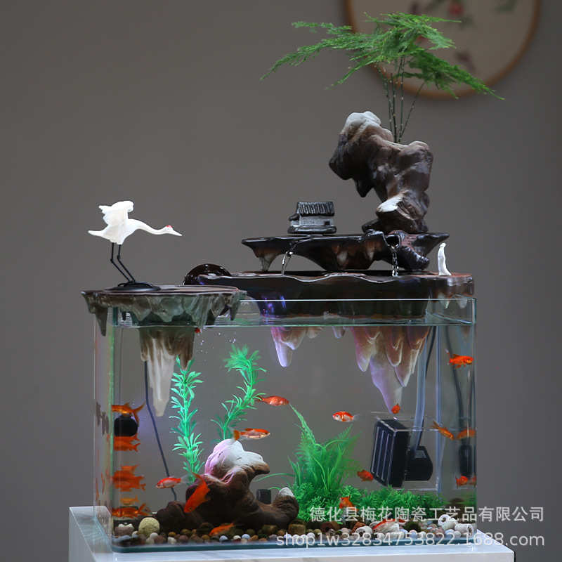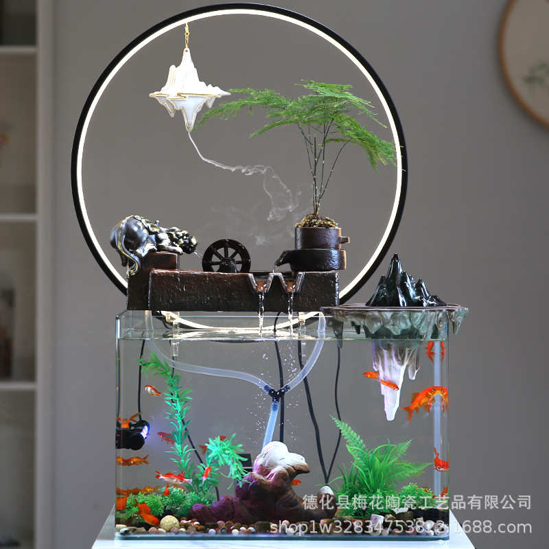 桌面客厅景观摆设玄关开业喷泉创意玻璃摆件循环流水礼品装饰鱼缸