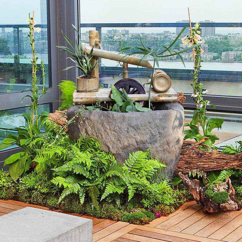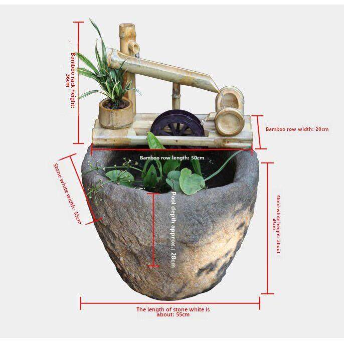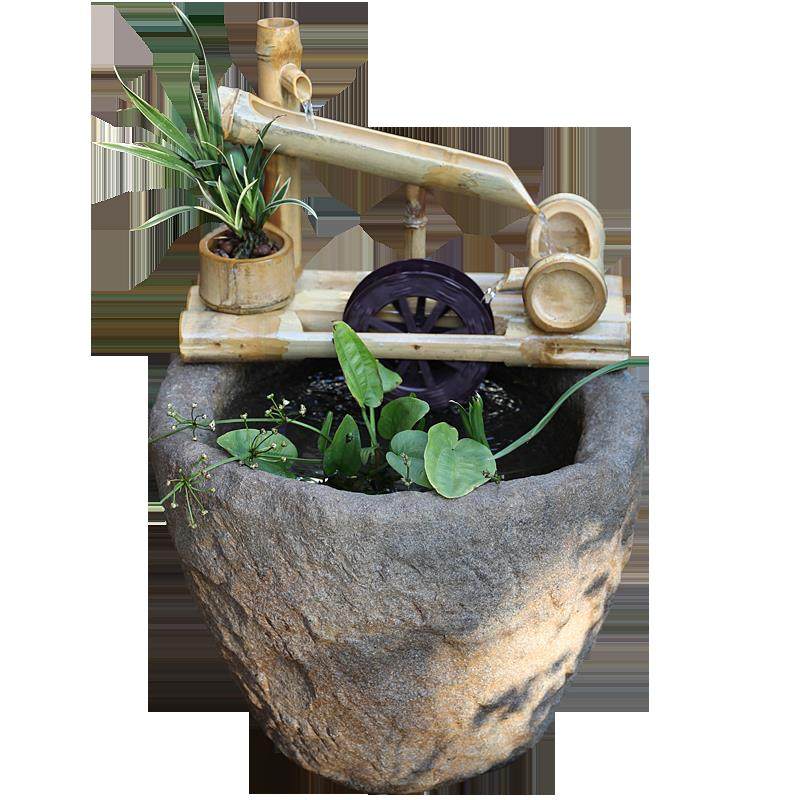 庭院装饰竹管水流装置石槽鱼缸风水轮车财富摆件喷泉加湿加氧循环