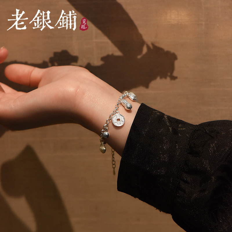 吴越老银铺足银禧铃手链纯银招财平安锁手链轻奢高颜值闺蜜手串