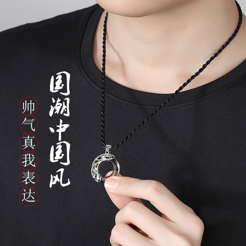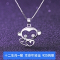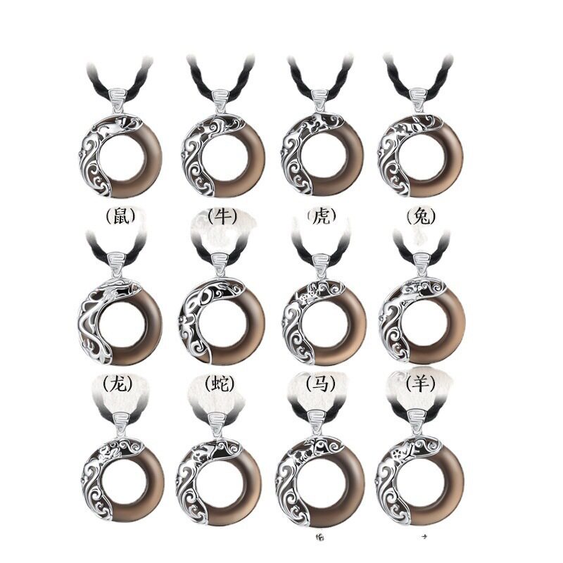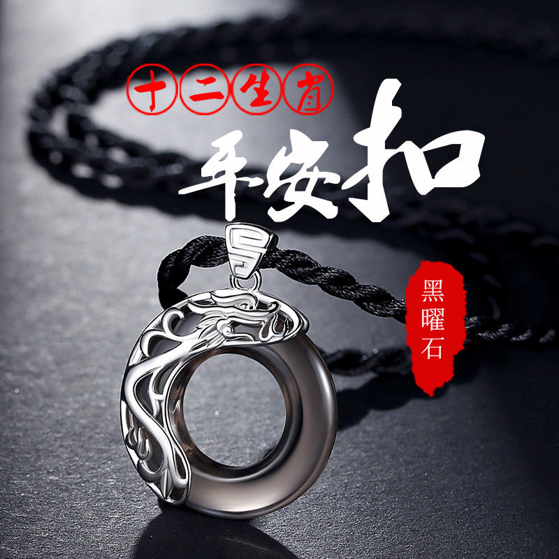 黑石平安扣十二生肖项链男潮流兔年本命礼物送男女纯银小孩吊坠