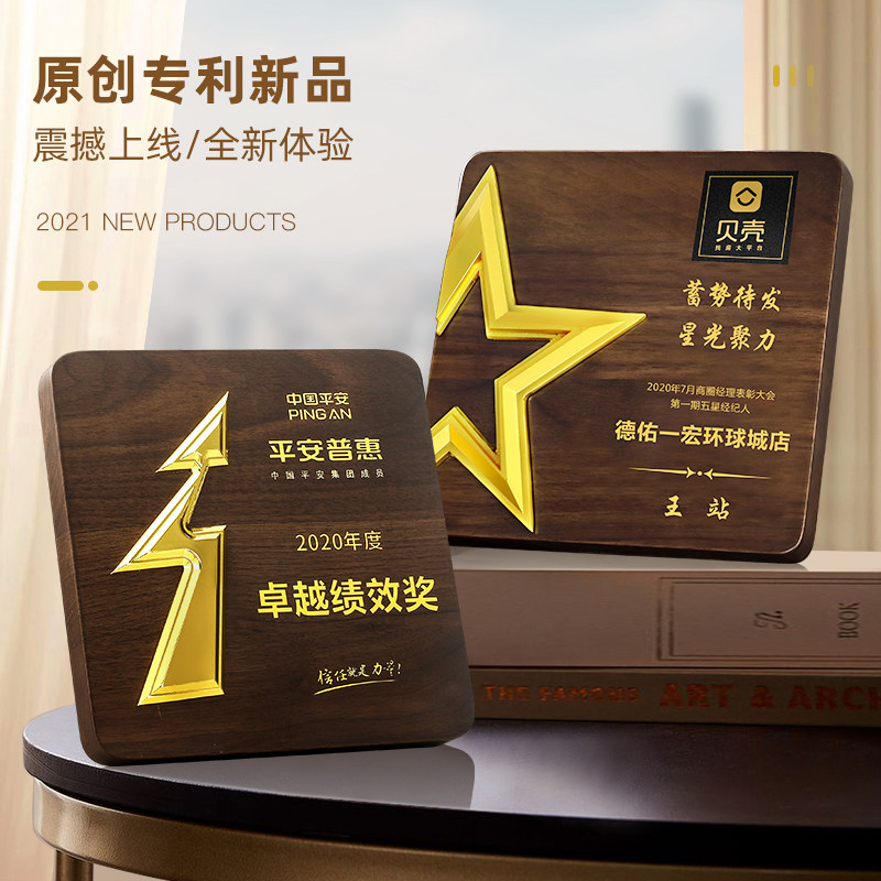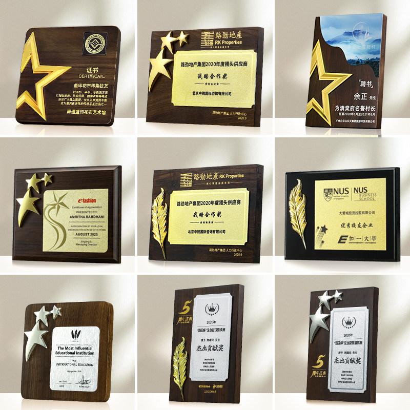 奖牌实木定制胡桃荣誉牌匾授权牌定做木托木质铜牌纪念牌奖杯年会
