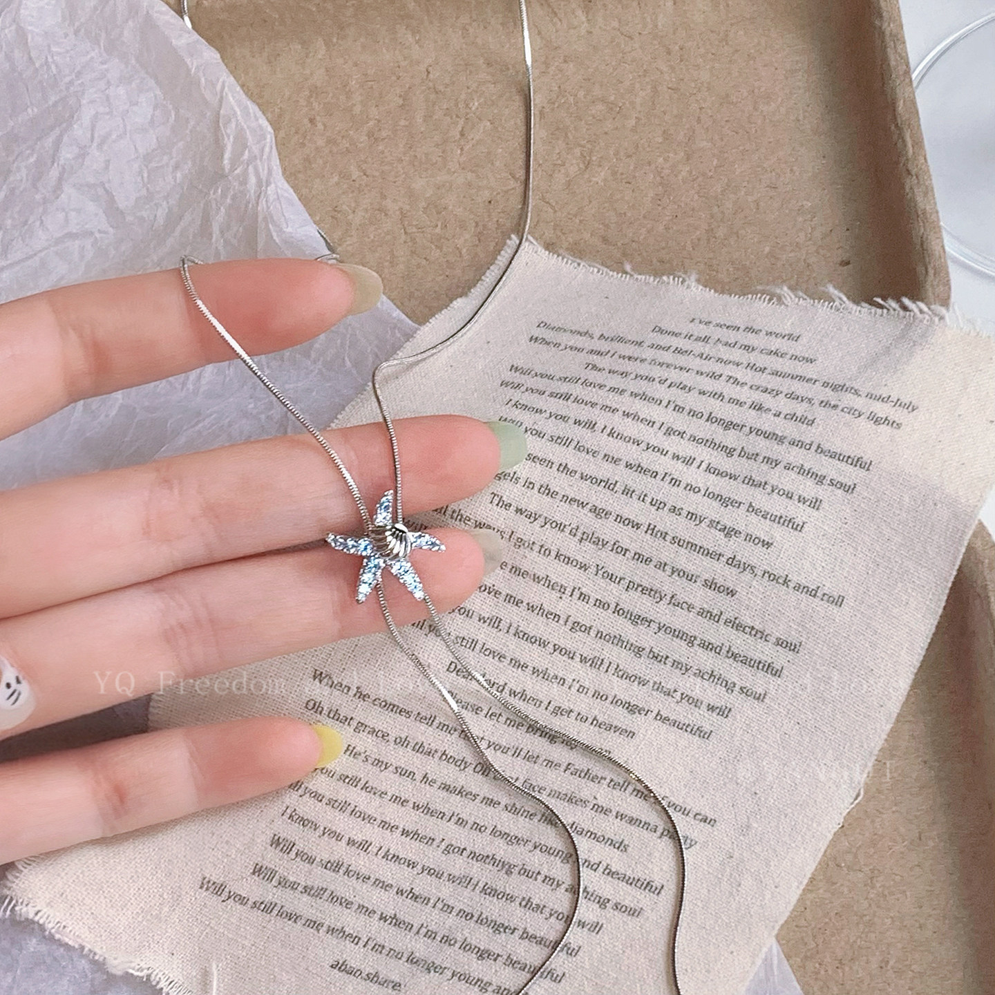 海边蓝色海星碎石珍珠长款项链女款海岛度假风2026新款锁骨链配饰
