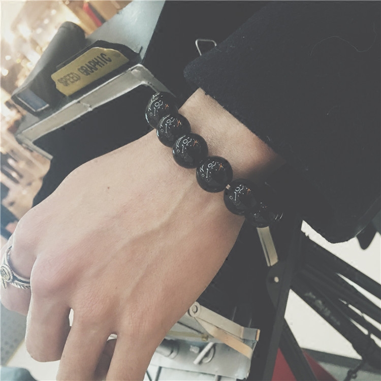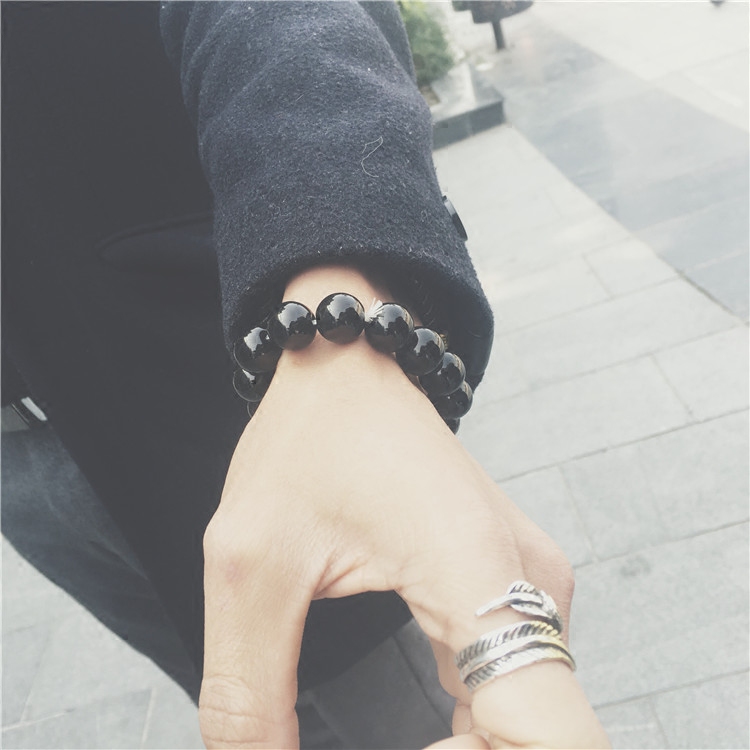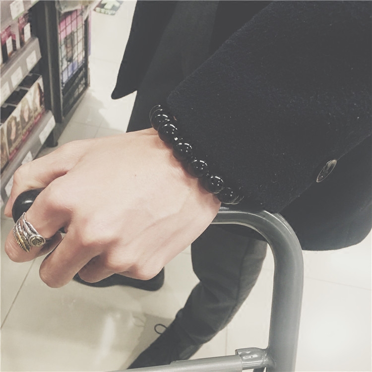 手工编制纯色串珠手链极简主义黑色情侣佛珠男士不掉色大粒径珠子