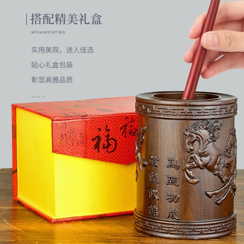 档高奢檀木九龙笔筒办公室领导x毛B349笔轻高级感桌面摆件实木质