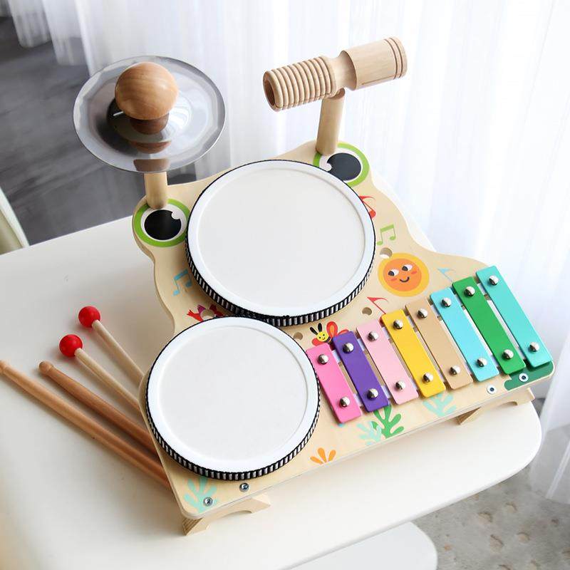 木制青蛙多功能音乐台宝宝儿童早教益智手眼协调多功能架子鼓玩具
