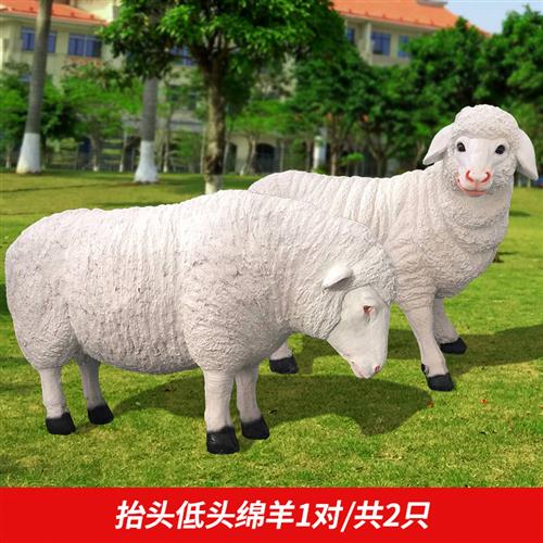 仿真绵羊摆件山羊草皮羊玻璃钢雕塑园林花园庭院户外草坪动物装饰