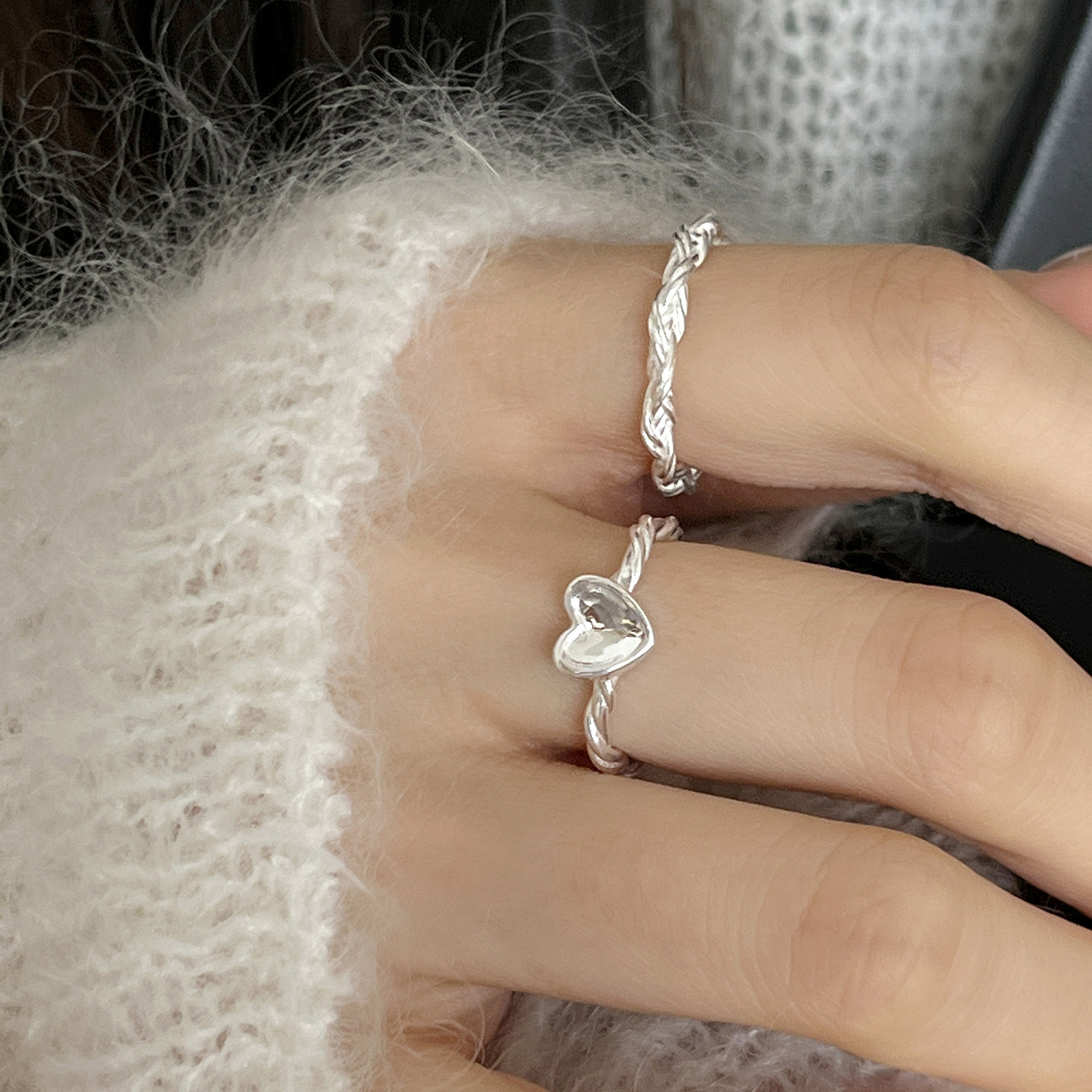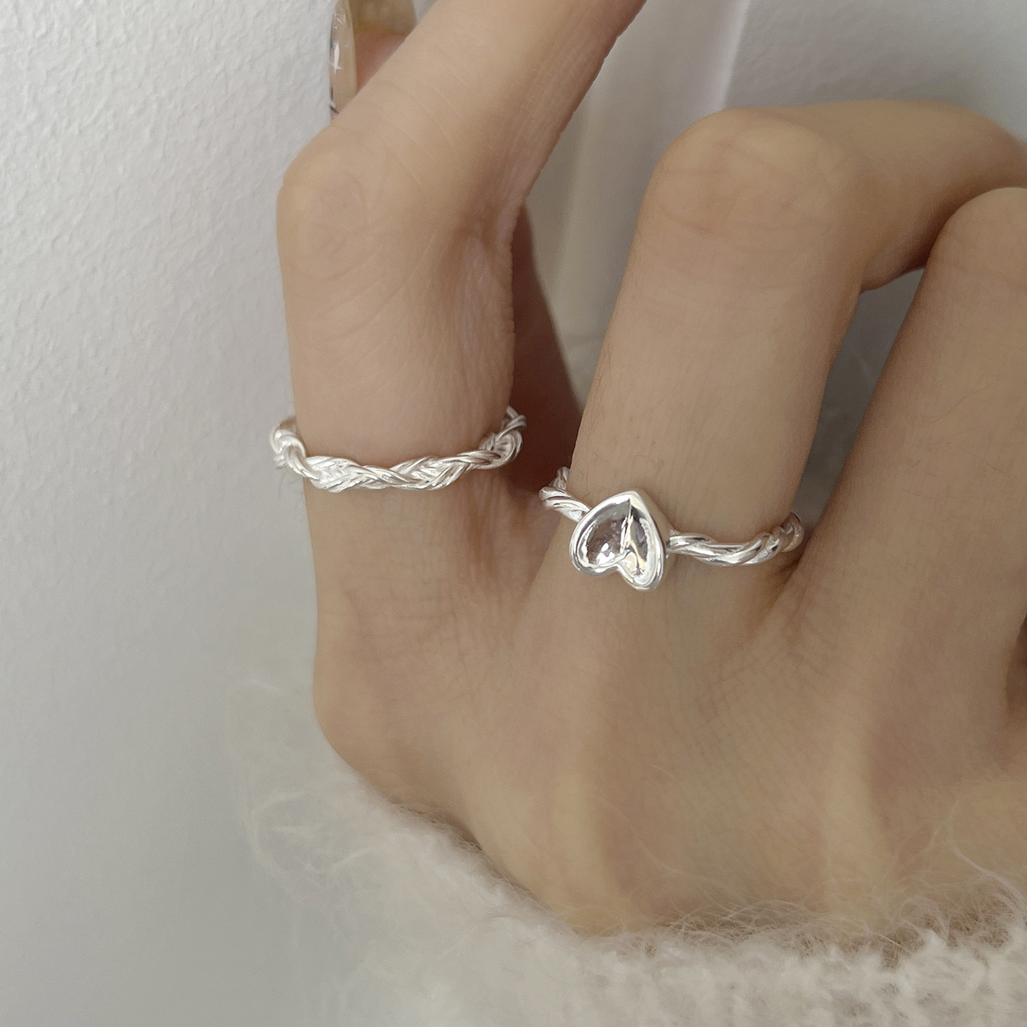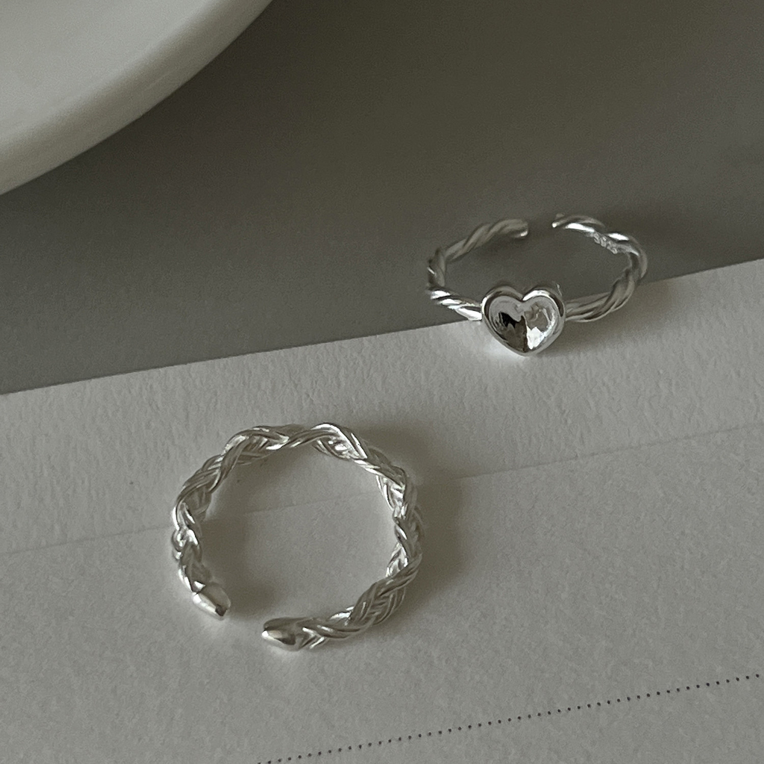 极简S925纯银女款戒指设计小众甜心扭纹编织戒指爱心戒指简约指环