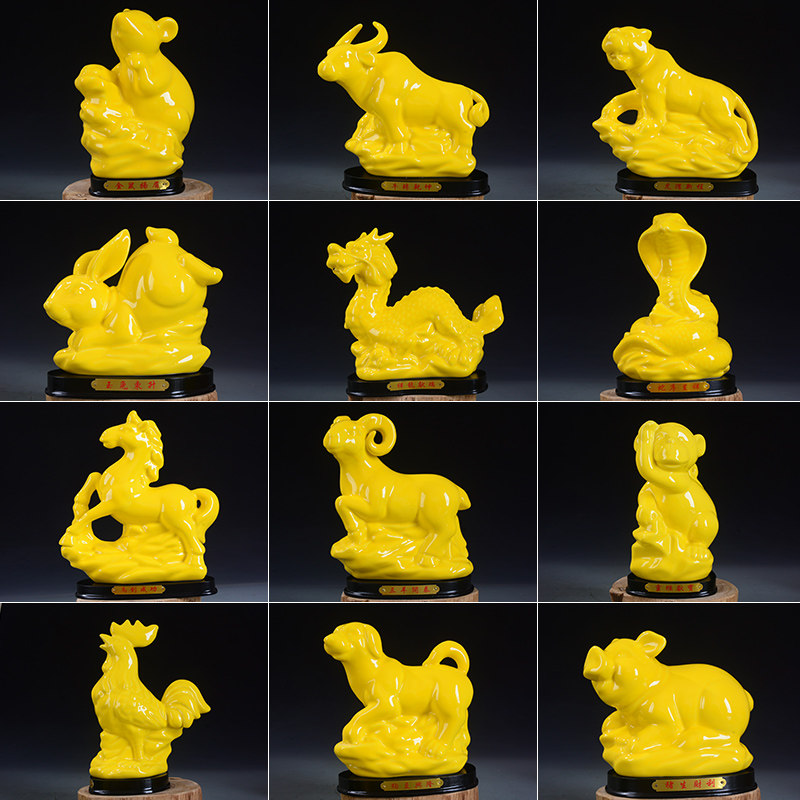 陶瓷十二12生肖摆l件黄色鼠牛虎兔龙蛇马羊猴鸡狗猪工艺品摆设装