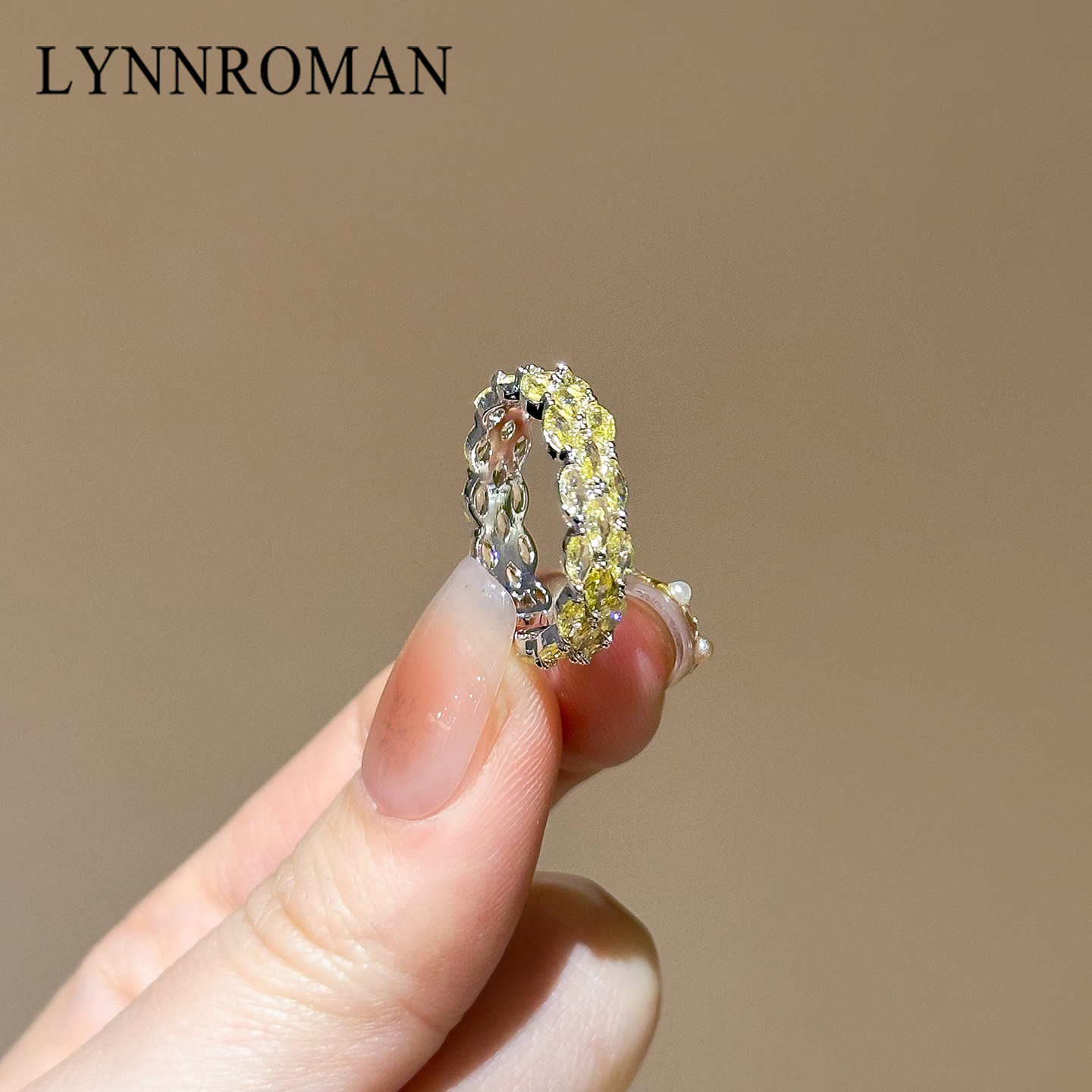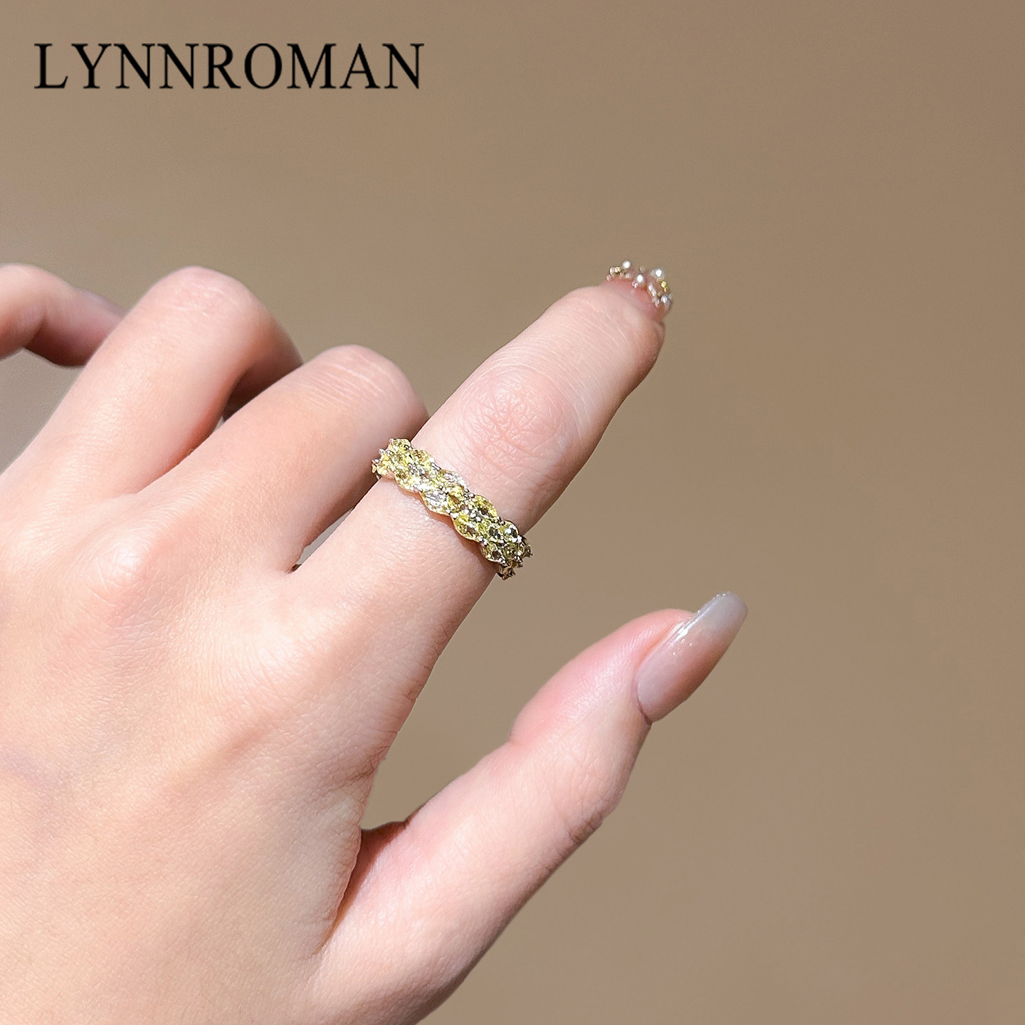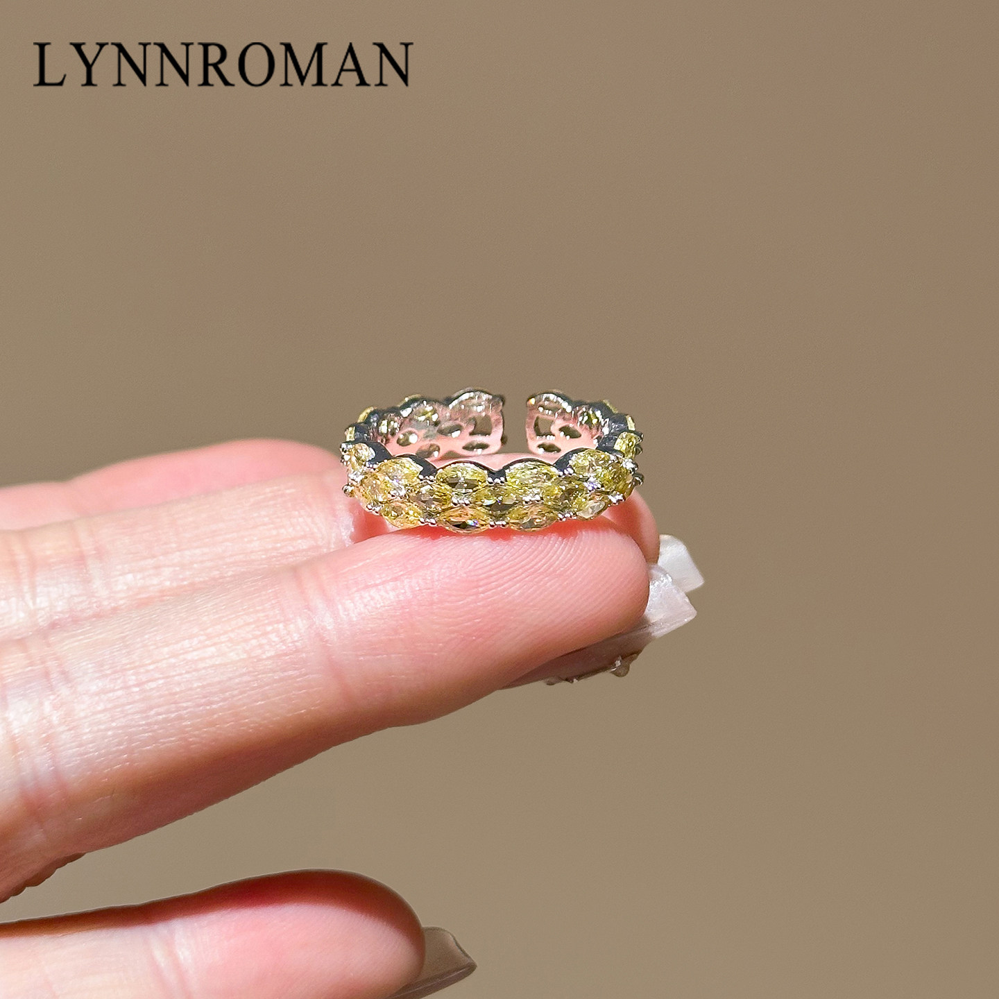 LYNNROMAN黄色氧化锆开口可调节戒指女2026新款高级感食指戒指环