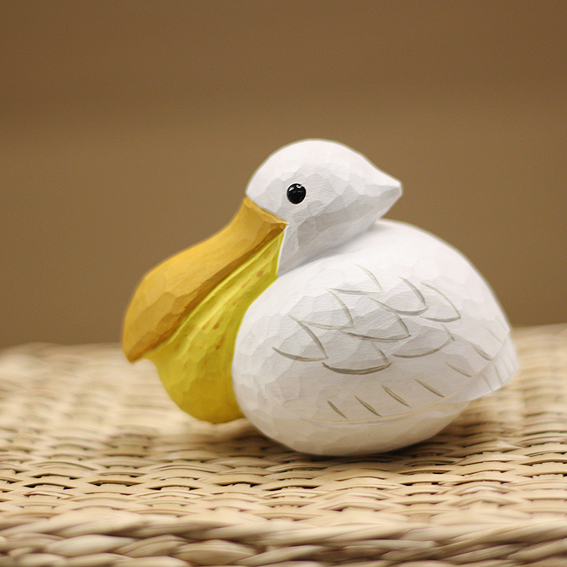 鹿妖商店 鹈鹕灌顶 木雕小鸟 肥啾 礼物 网红 纯手工实木桌面摆件