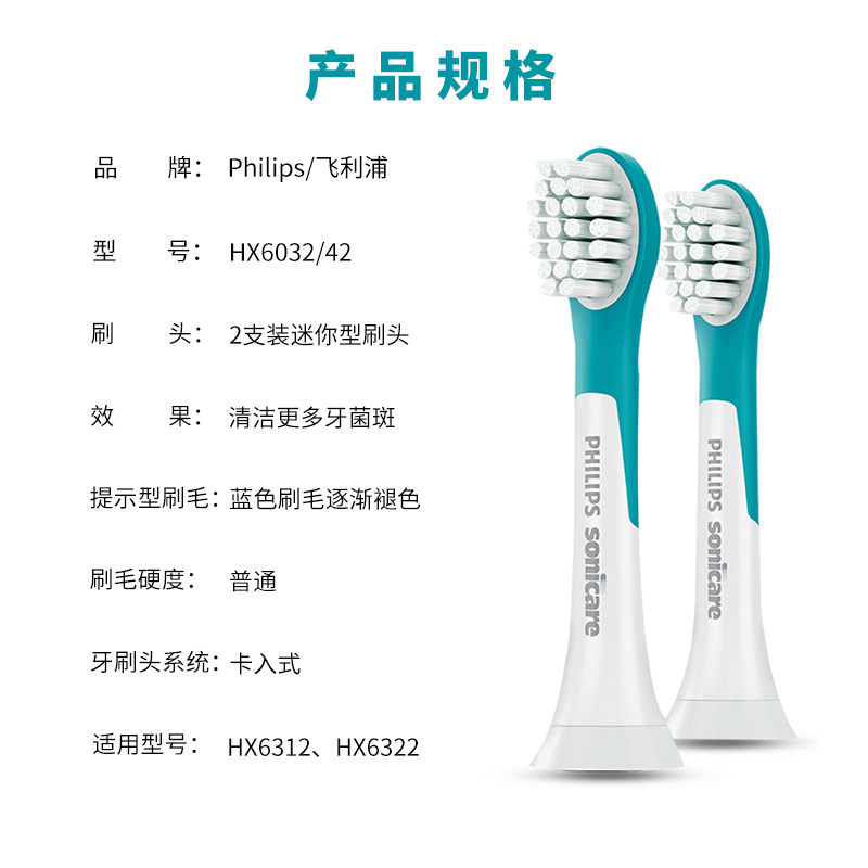 飞利浦儿童电动牙刷头HX6032HX6042替换HX6352/6322/6312原装通用