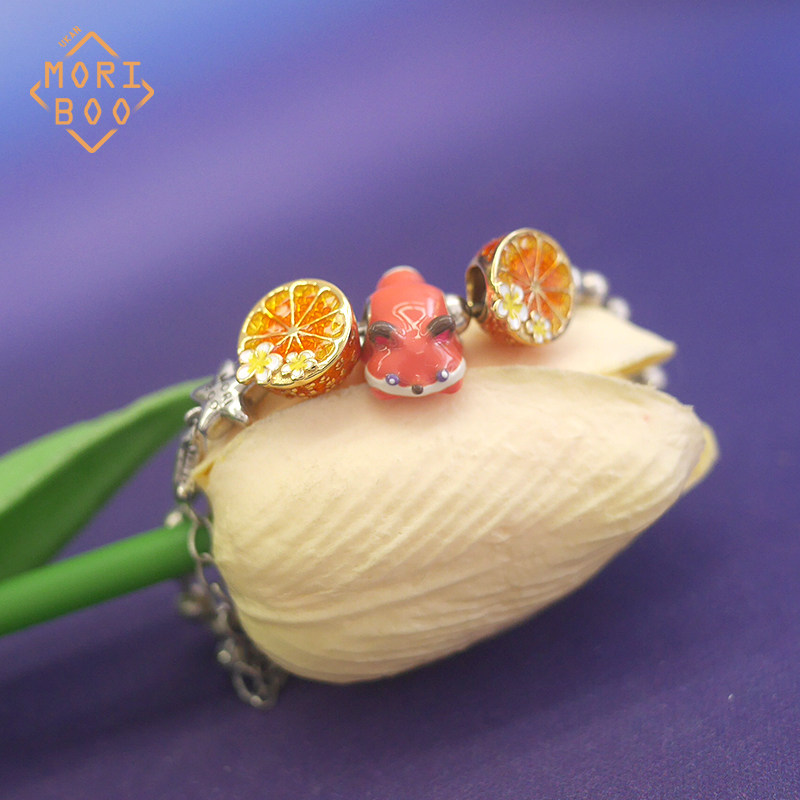 有看S925银夏日鸡蛋花蜜桔火红小狐狸串珠ins风小众甜美手链配饰