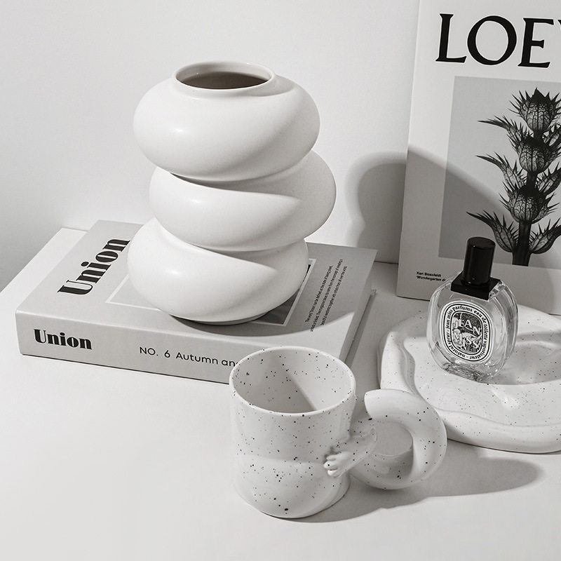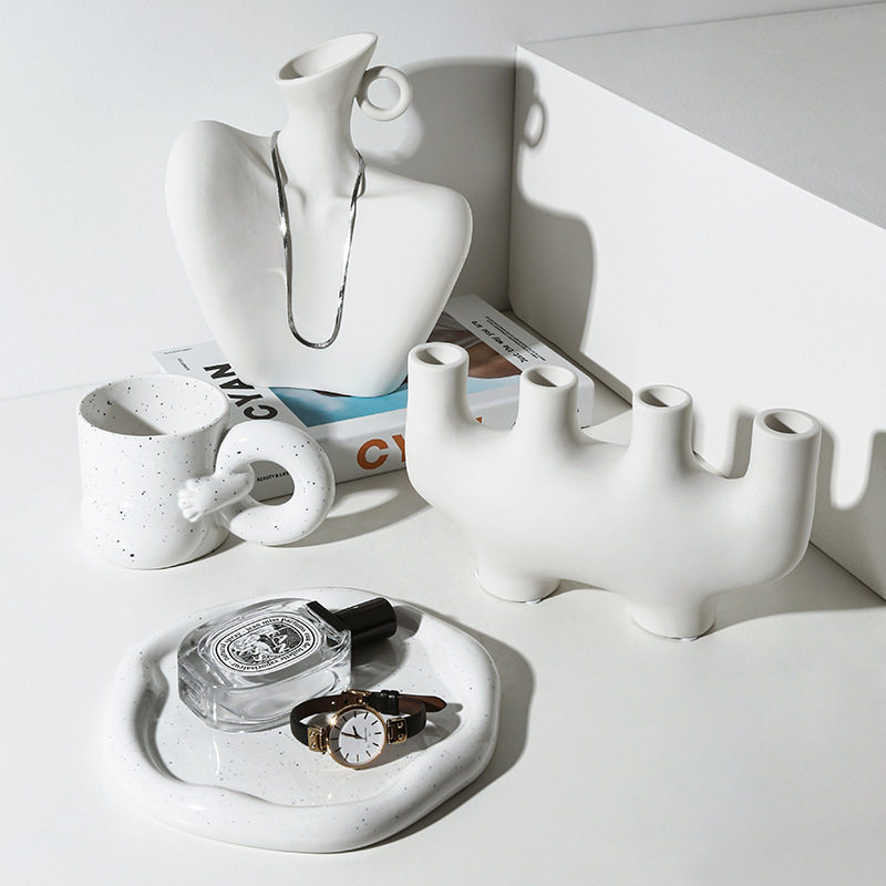 贝汉美欧式白色花瓶高级感创意家居装饰品不规则卧室花器陶瓷摆件