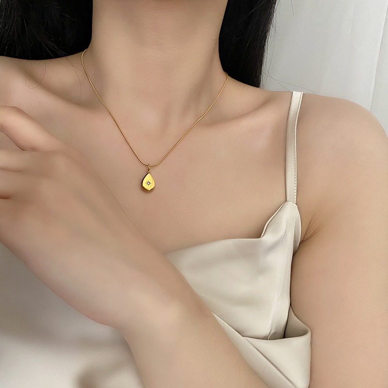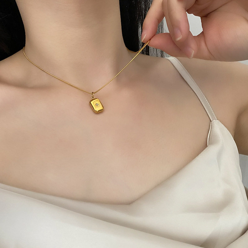 日韩小众方块钛钢不掉色水滴星星项链女蛇骨链镶钻锁骨链甜美饰品