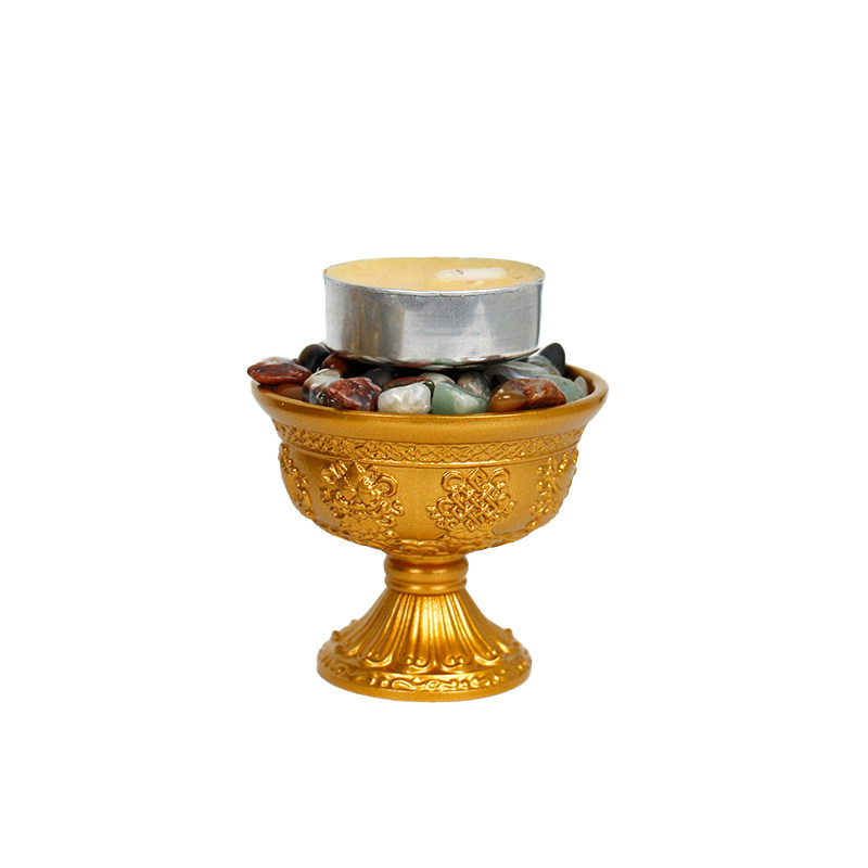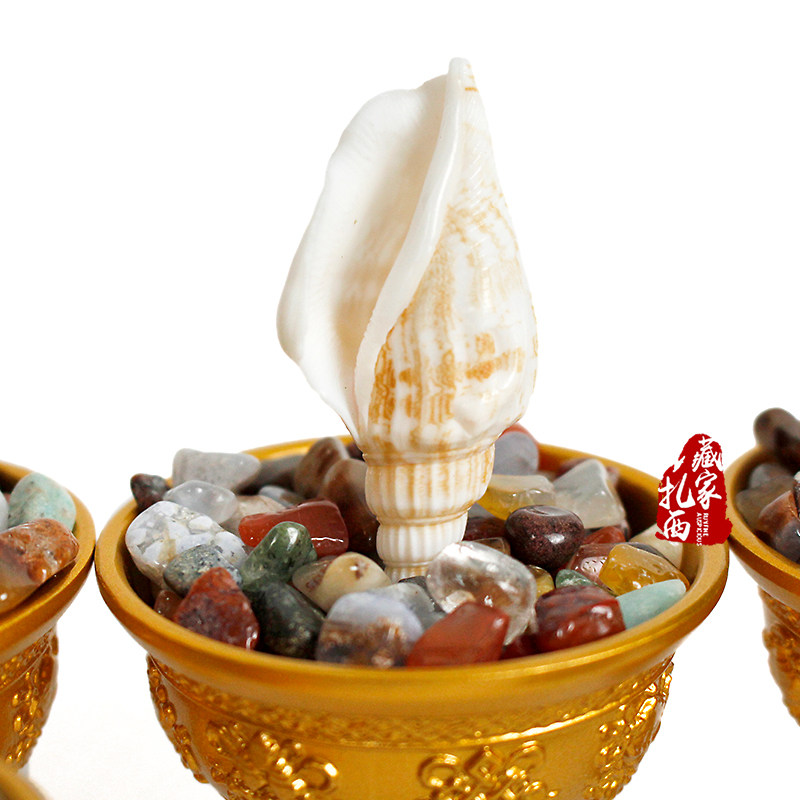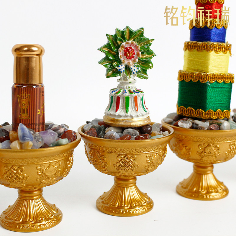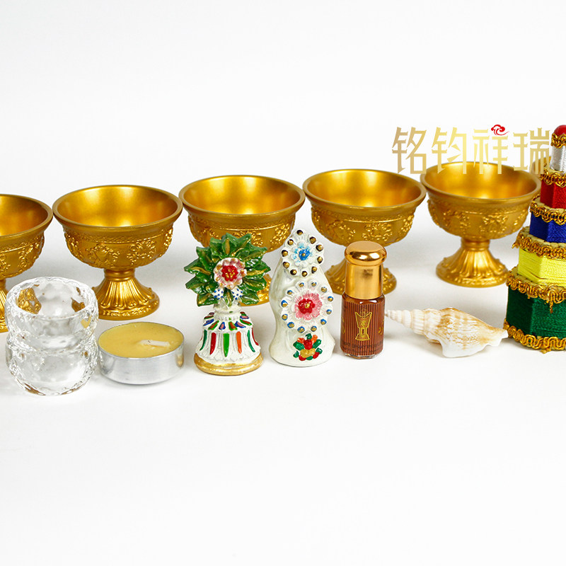 藏式砂金八吉祥供水杯八供全套八宝水碗 佛前摆件供碗七宝石朵玛