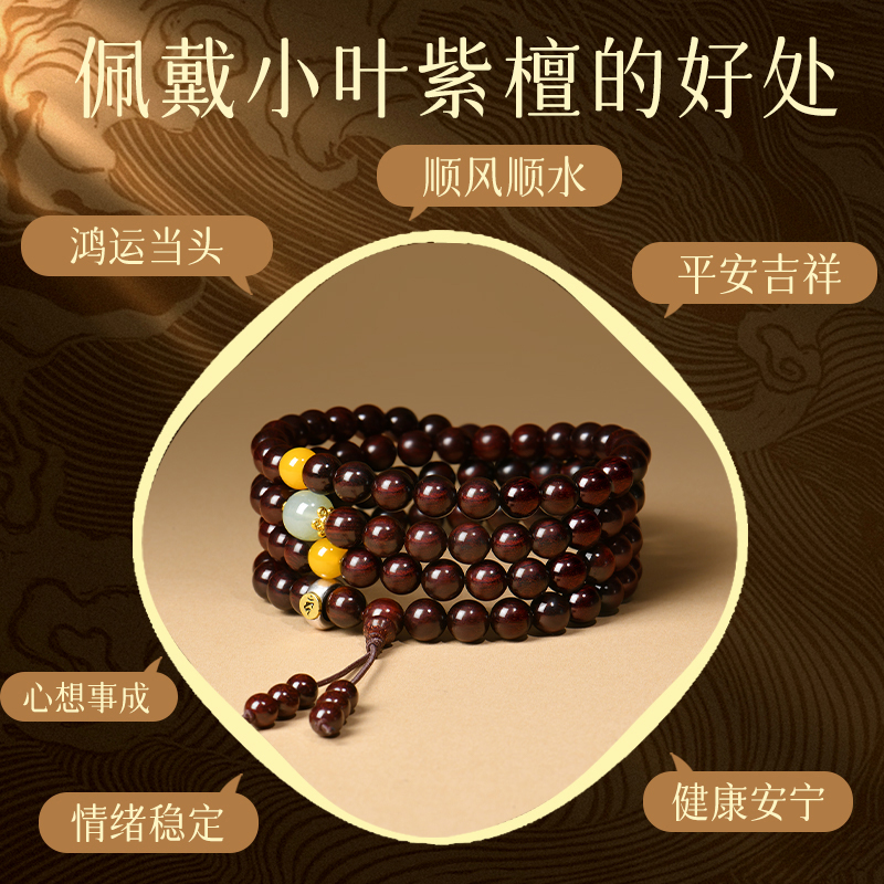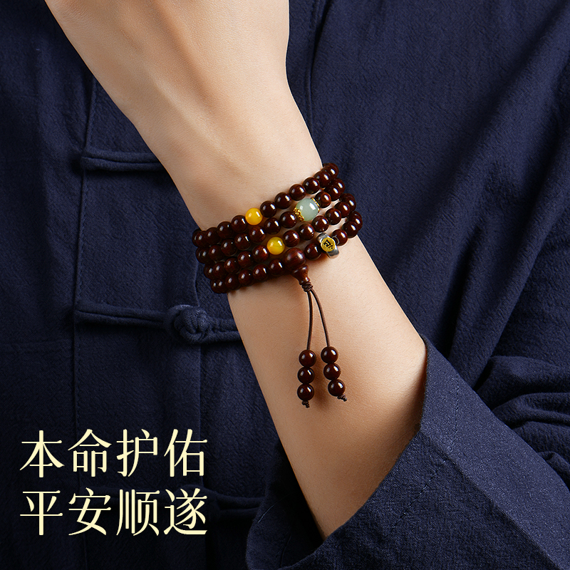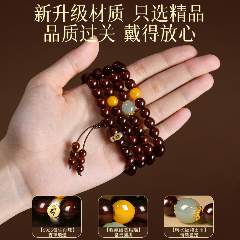 普陀山天然小叶紫檀手串108颗印度檀品老料男女真品木质佛珠手链
