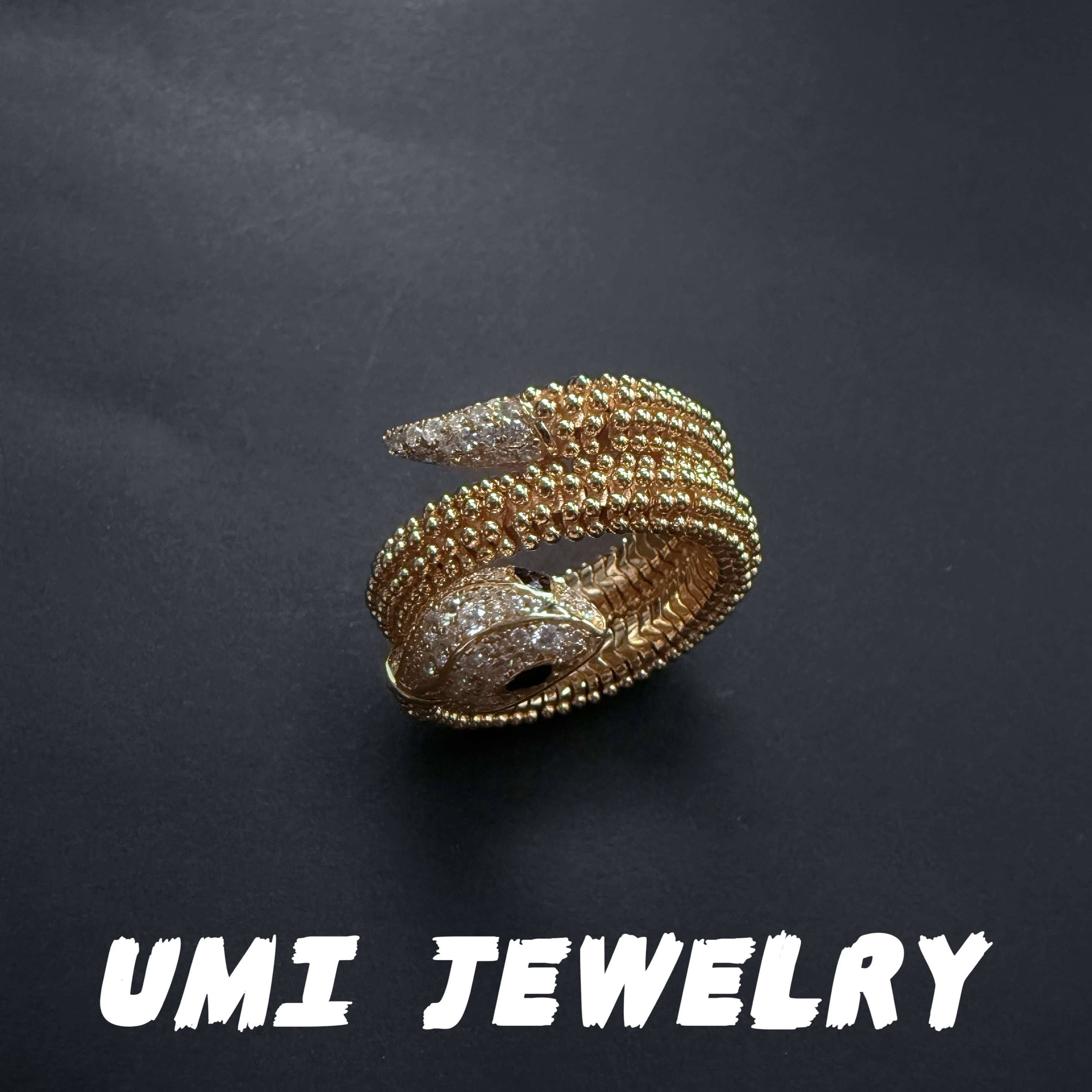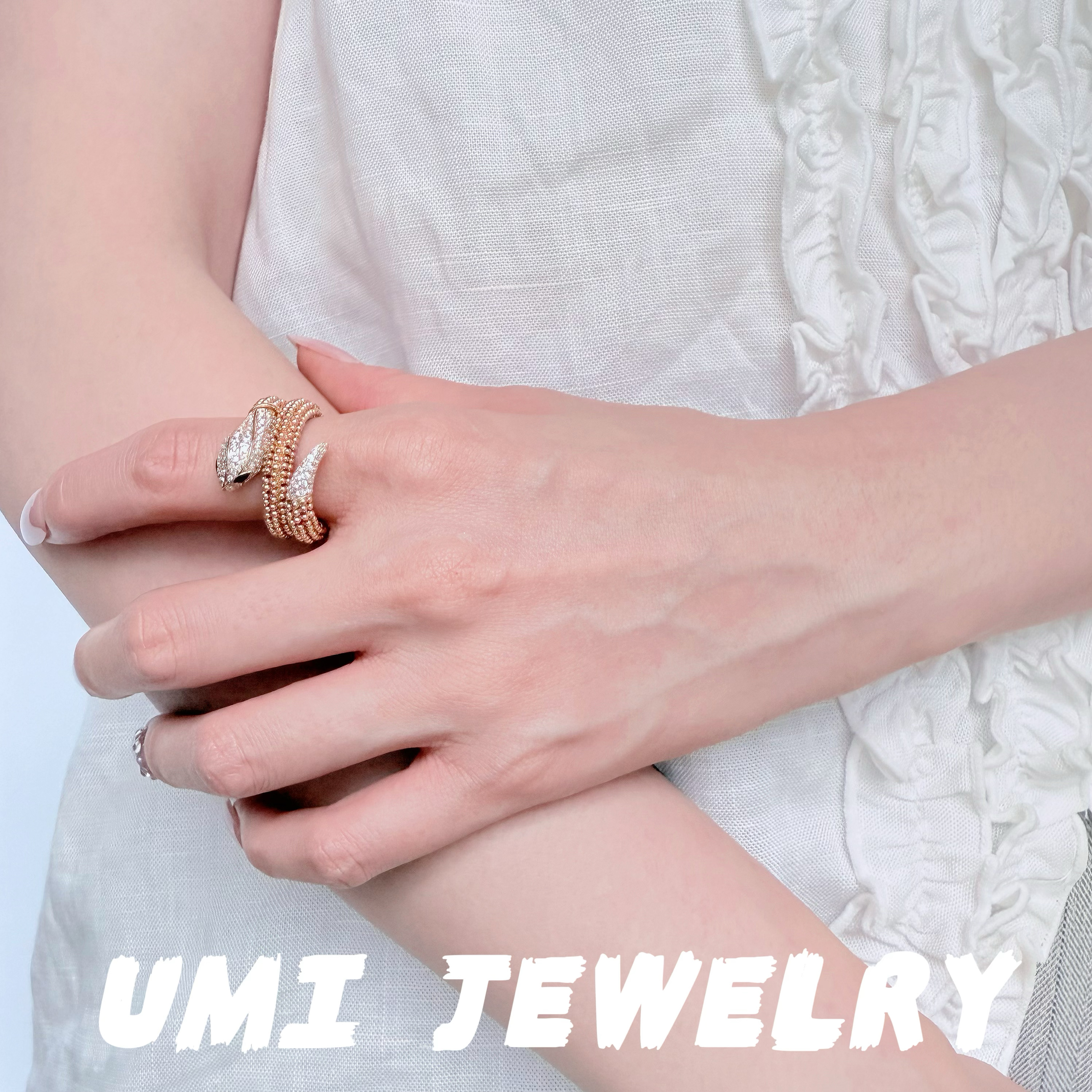 UMI家·轻珠宝/S925银镀k金蛇形金珠精致镶钻三层蛇戒轻奢高级感