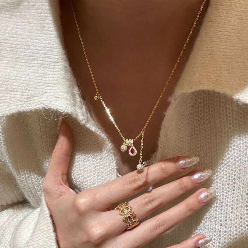 新款轻奢法式复古红宝石水滴坚果项链小众百搭时尚气质精美锁骨链