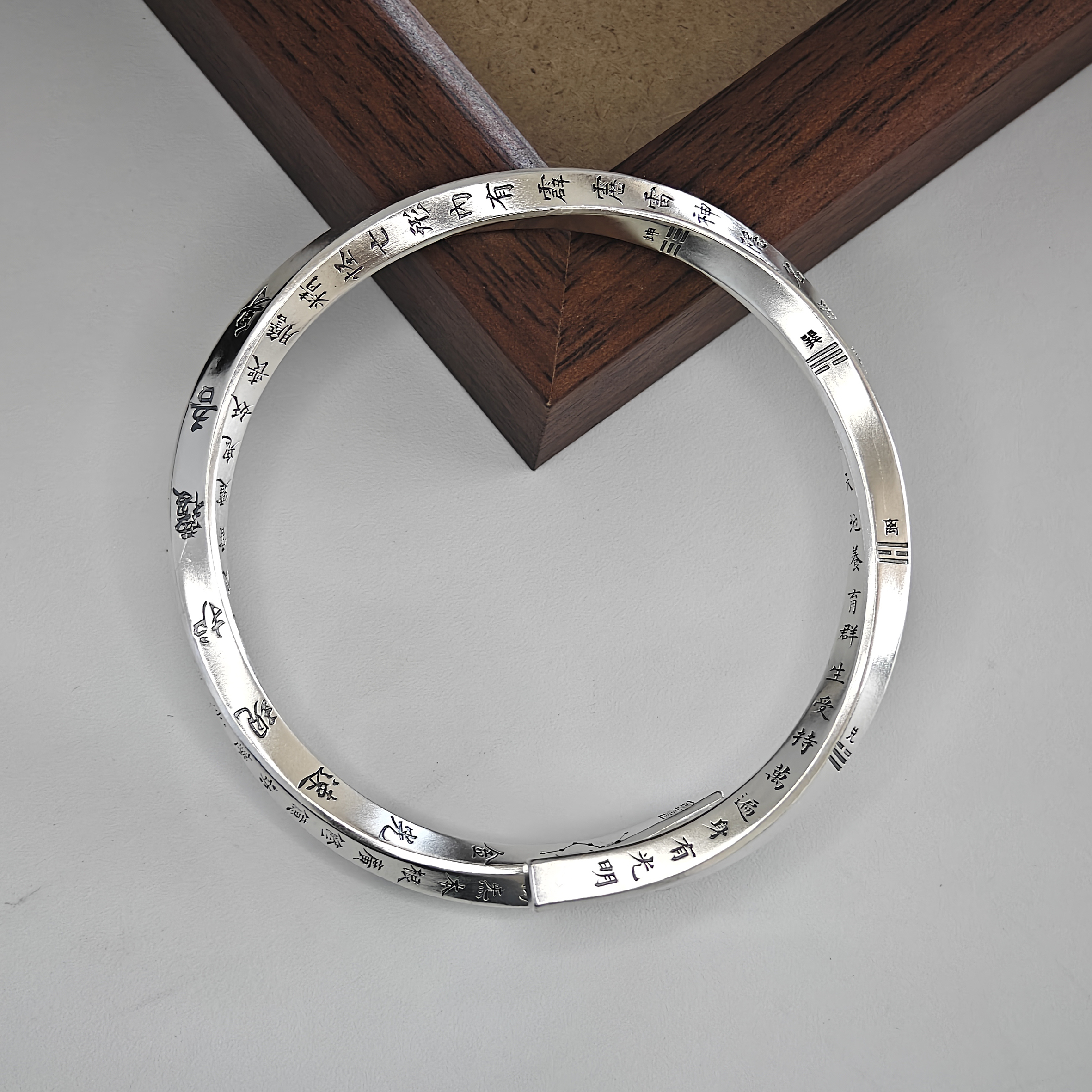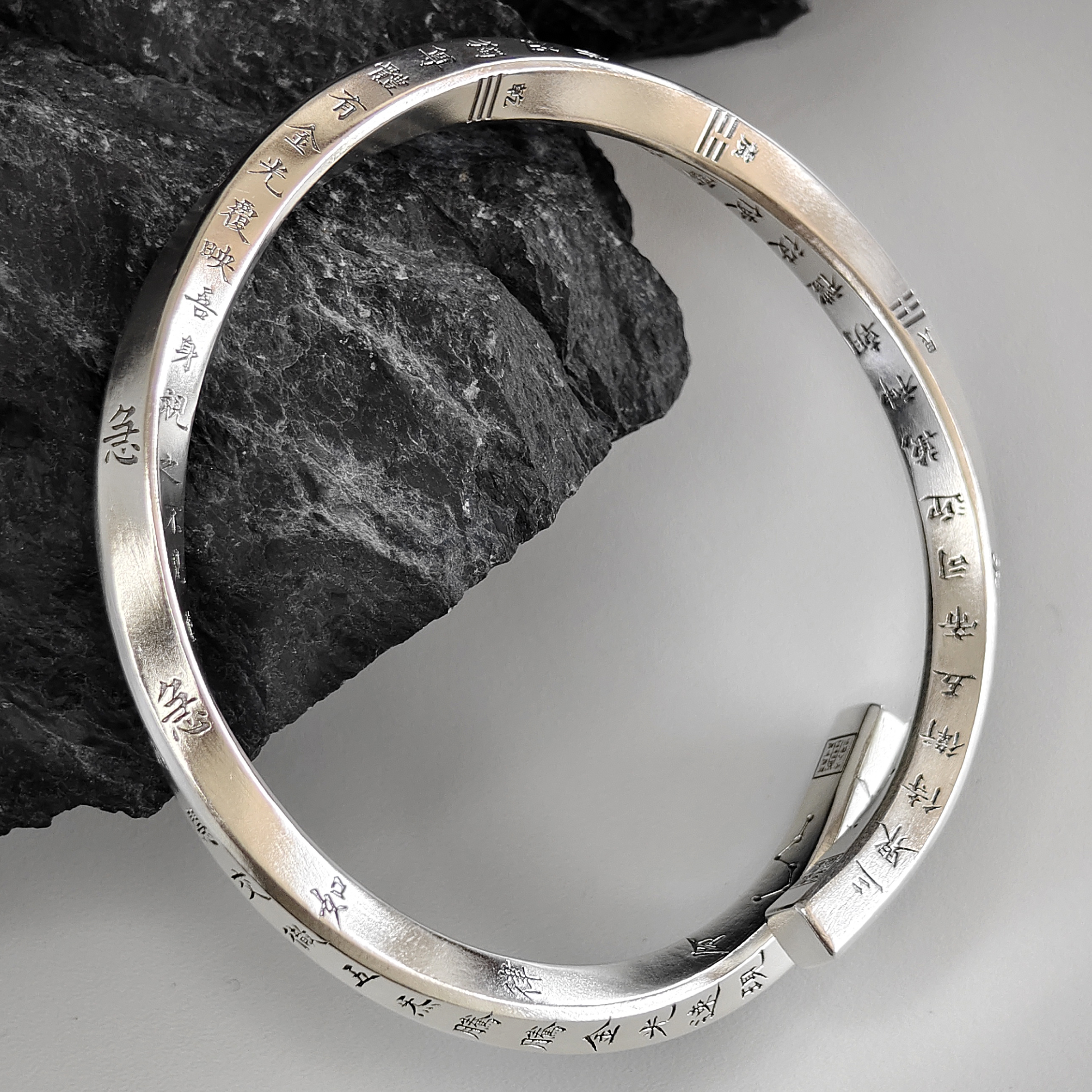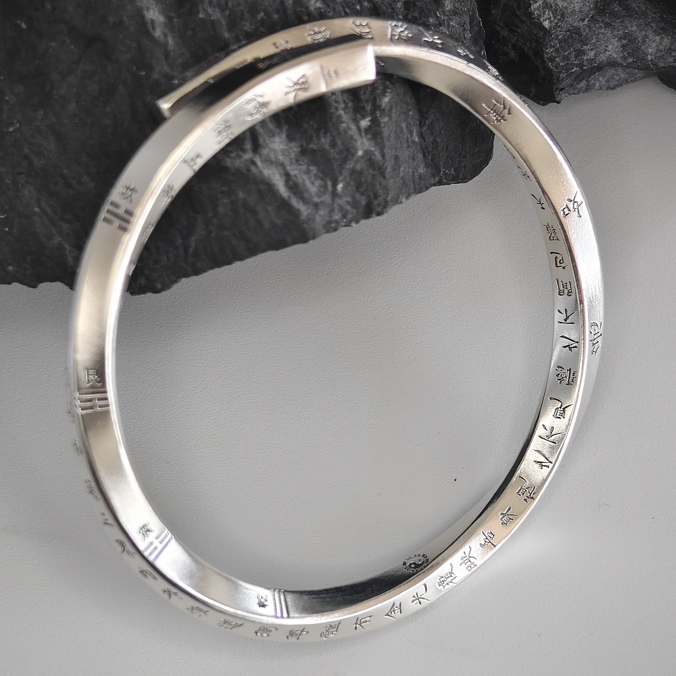 原创设计足银(道系·金光咒)手工复古风招财转运银手镯男女款