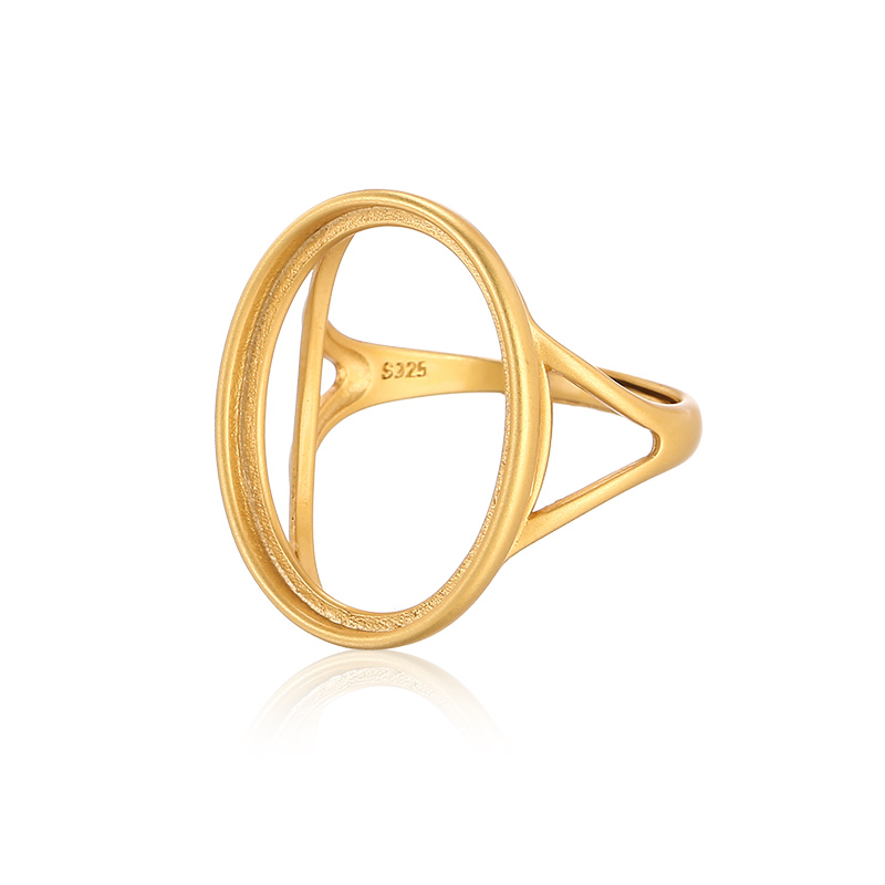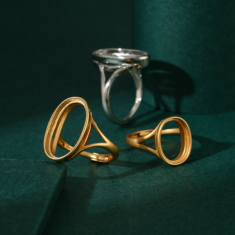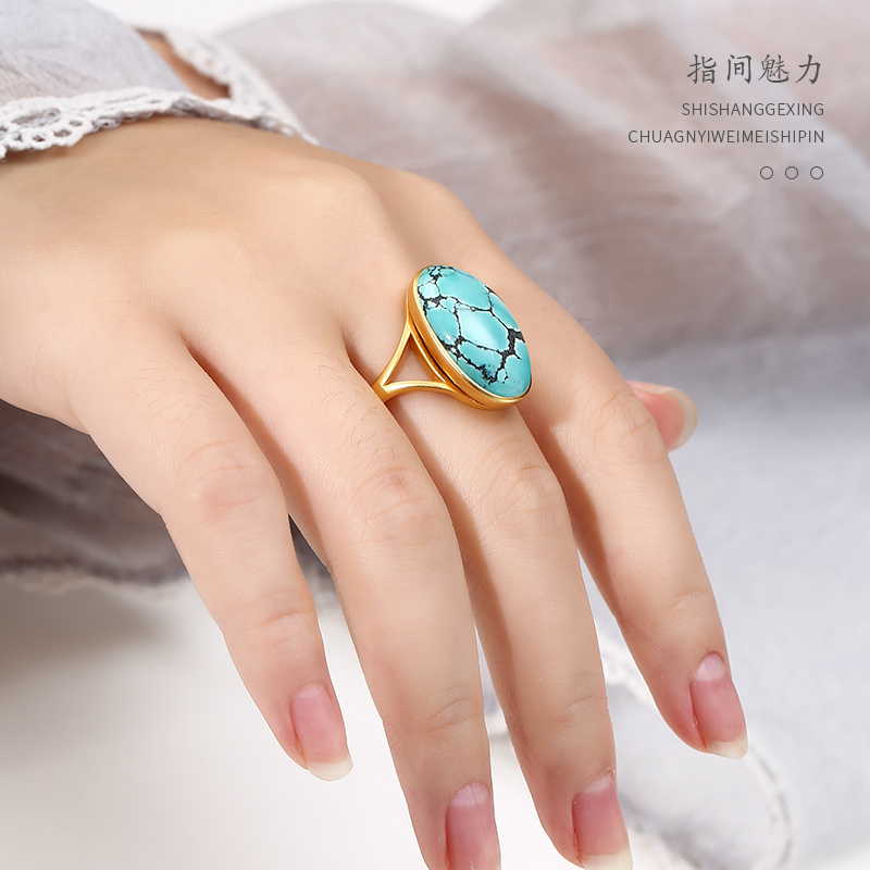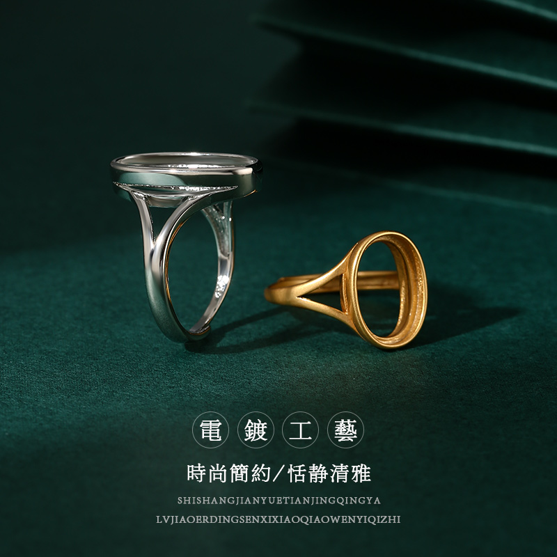 复古古法金工艺女戒指空托 时尚蜜蜡绿松石戒托 简约椭圆形戒指托