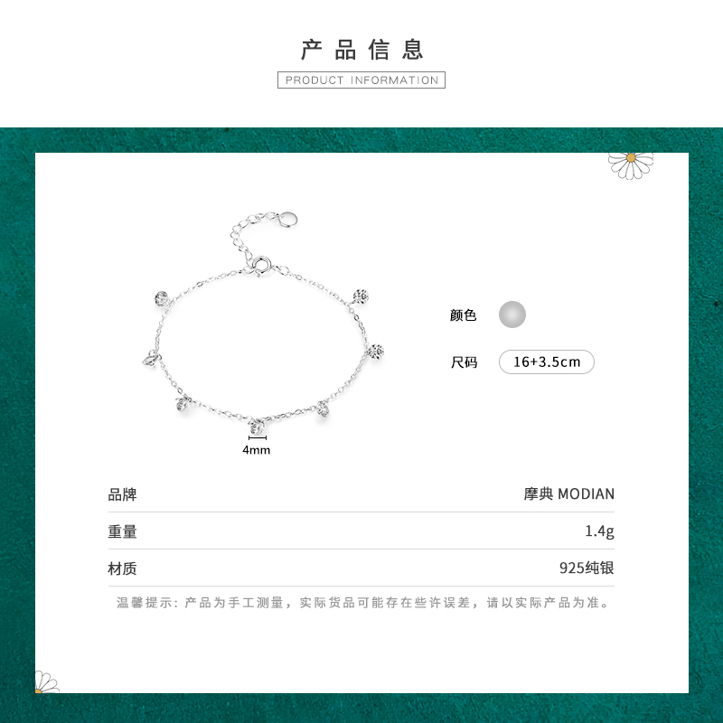 MODIAN设计师满钻925纯银轻奢手链女ins小众设计手饰品送闺蜜礼物
