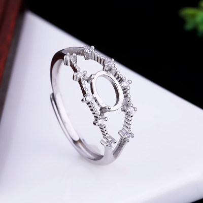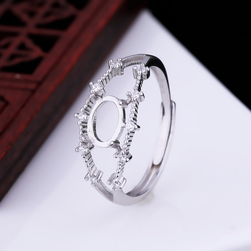 戒托女S925纯银戒指空托韩版镶嵌琥珀绿松石蜜蜡活口戒托5*7银托