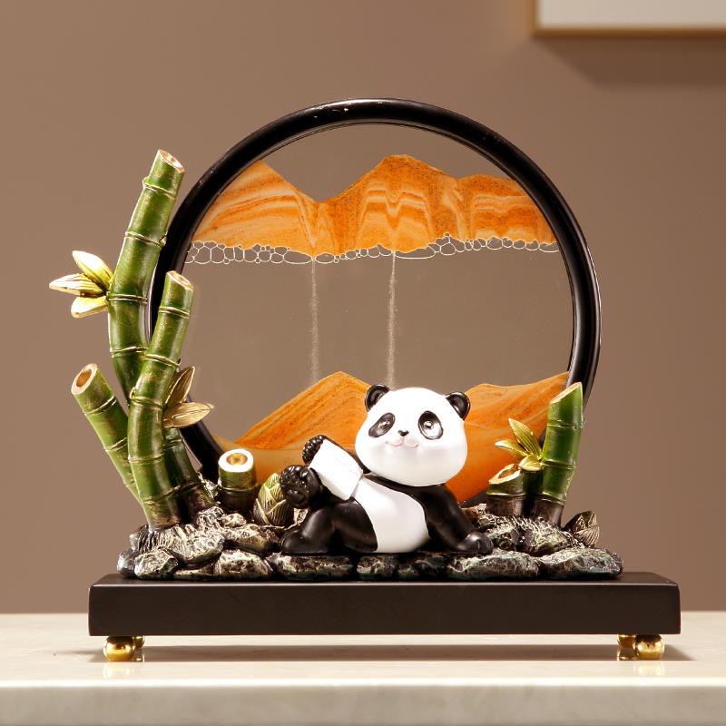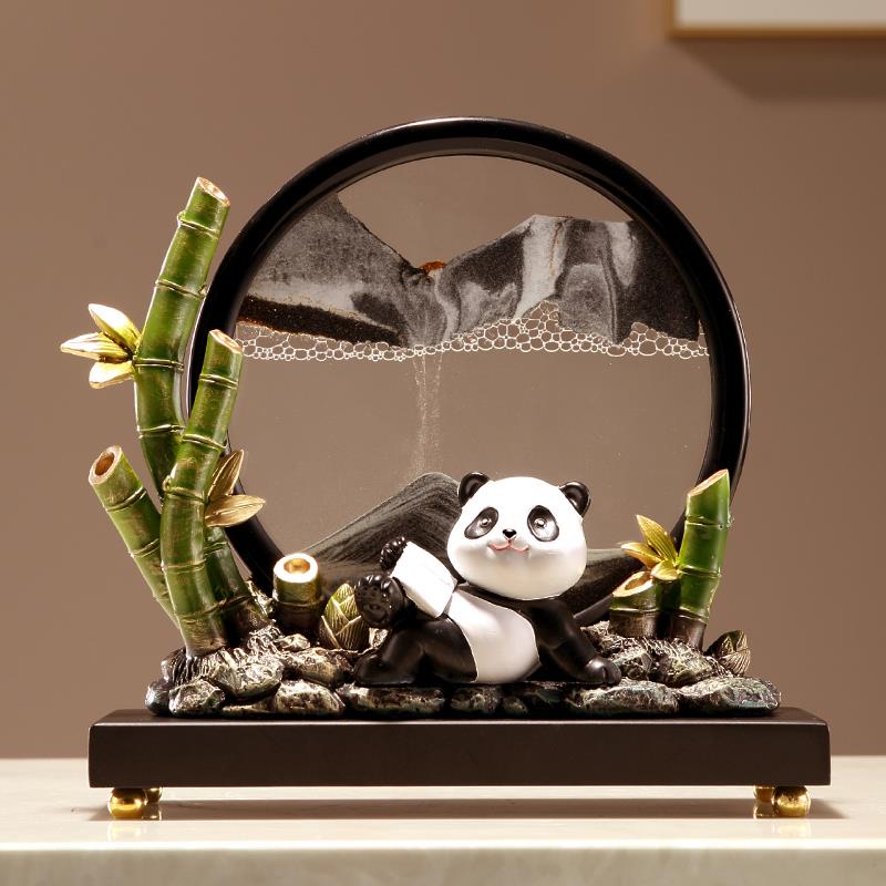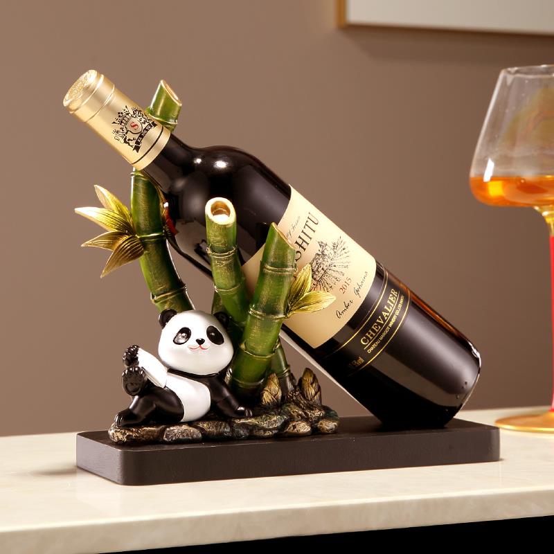 新中式卡通熊猫竹子红酒架子酒柜装饰品摆件客厅电视柜家居工艺品