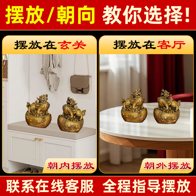黄铜貔貅一对摆件全铜兽摆件家居客厅办公室装饰品乔迁送礼摆设
