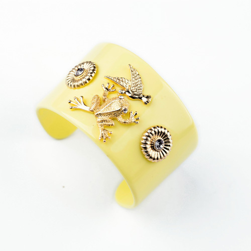 手镯 女欧美风格时尚饰品厂家直销 一体C型黄色花朵镶钻百搭手镯