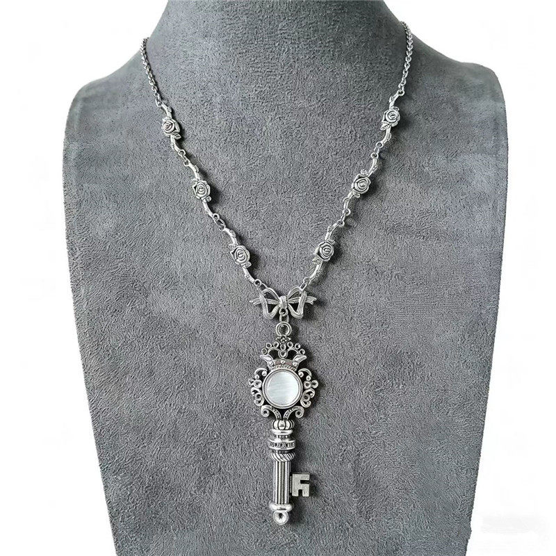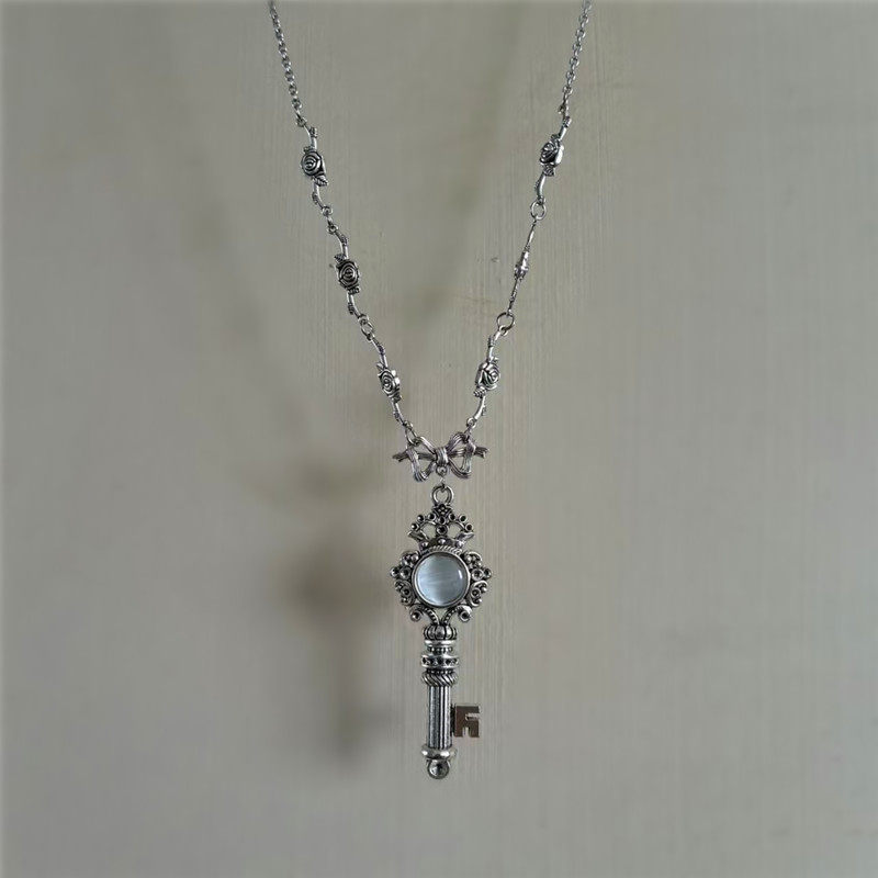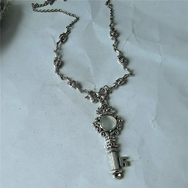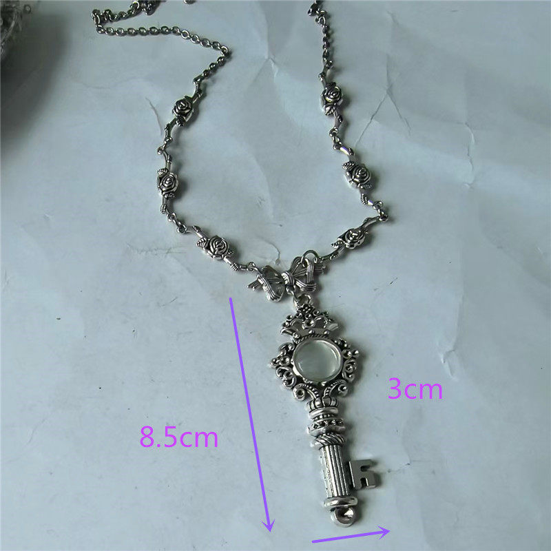 复古做旧ins小众玫瑰花蝴蝶结钥匙项链女新款洛丽塔系列毛衣链