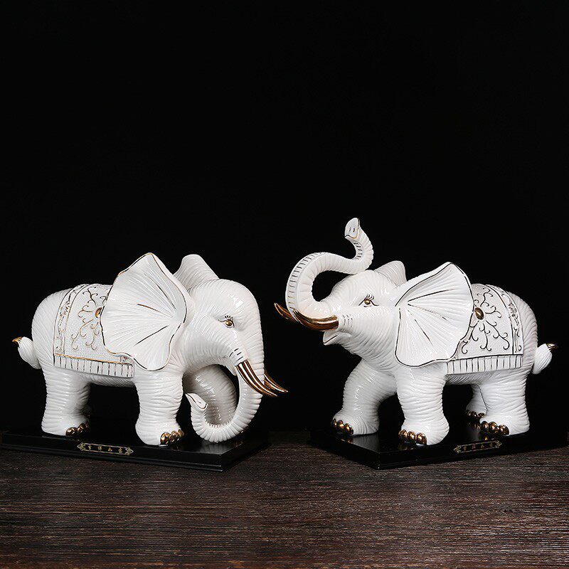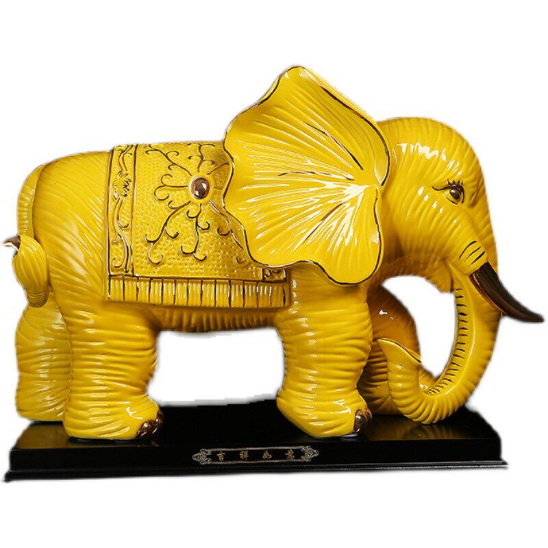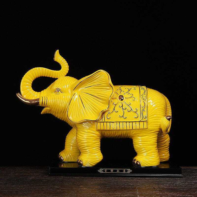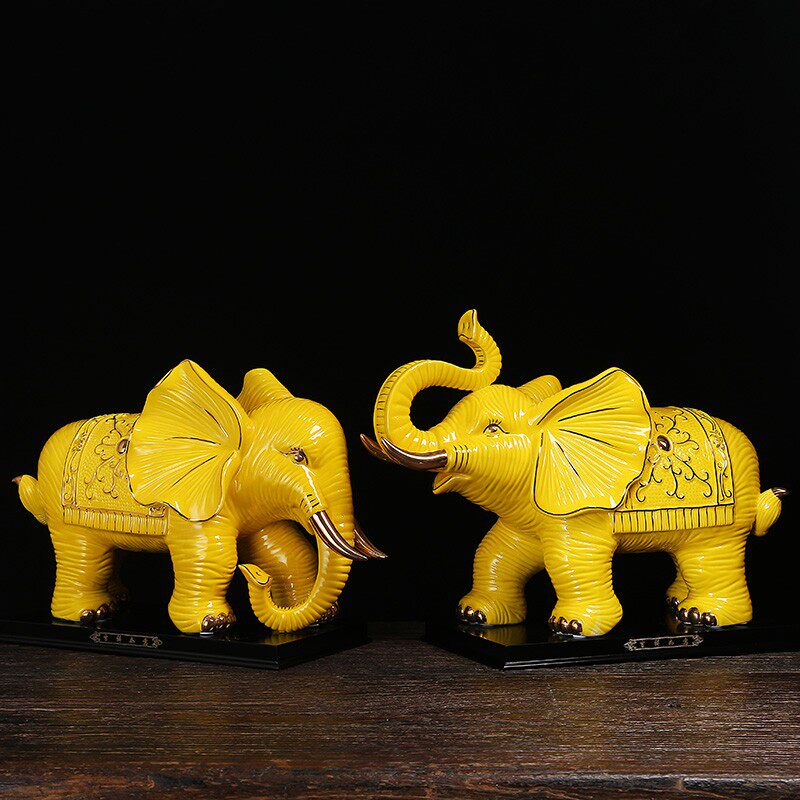 黄色陶瓷大象一对工艺品装饰夫妻象大号电视柜现代室