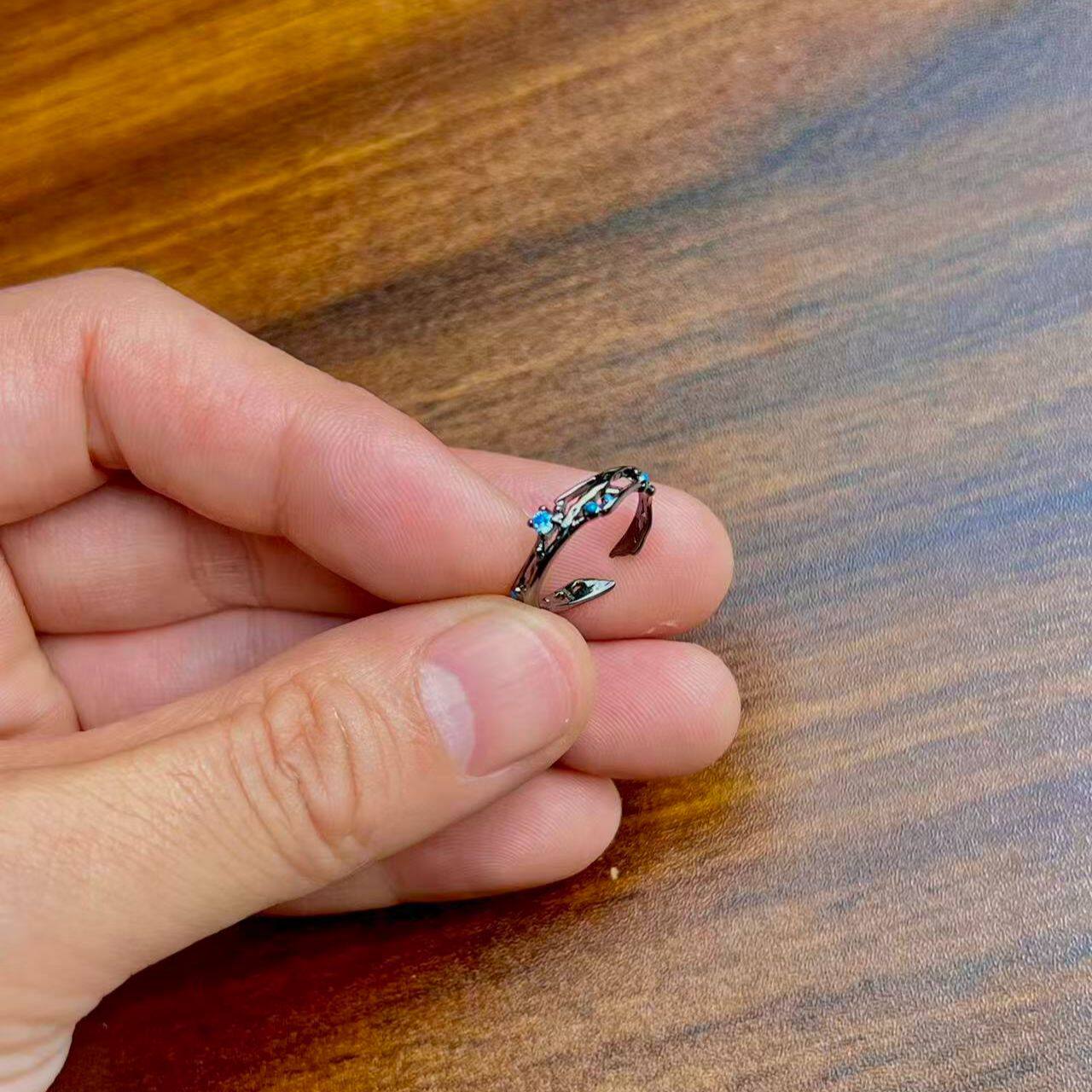新款高版本暗夜澜星尾戒戒指蓝色宝石尾戒轻奢简约时尚百搭