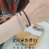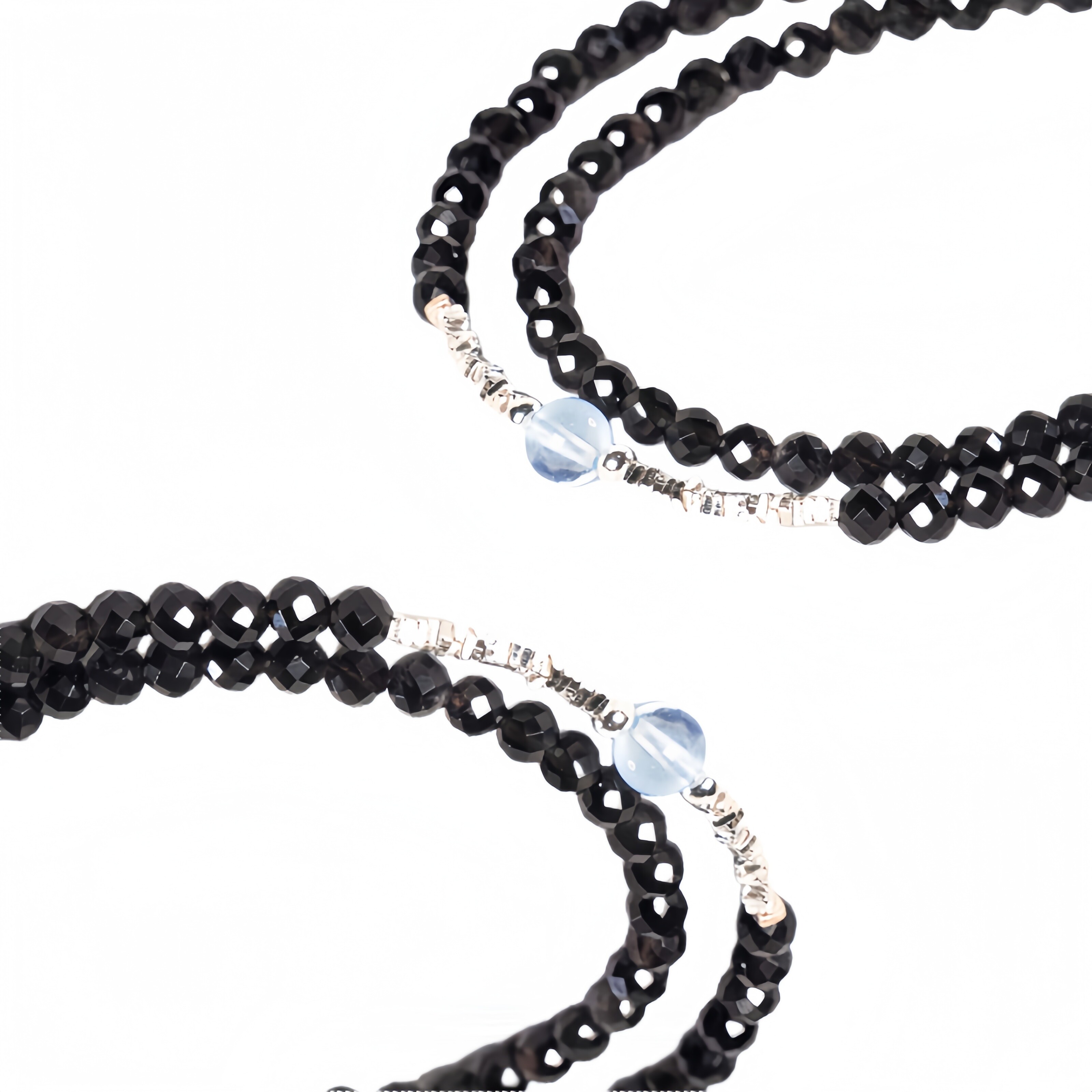 原创天然3mm黑曜石925碎银子海蓝宝双圈极细单戴叠戴精致手链手串