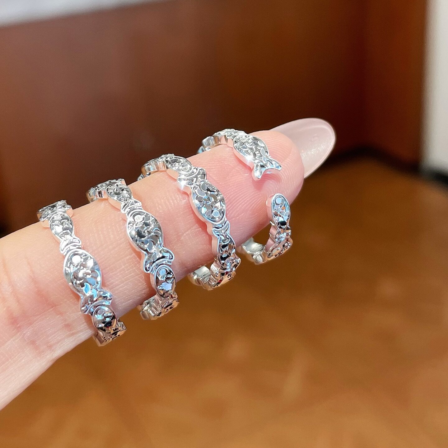 足银9999纯银碎冰冰小鱼戒指女碎银子戒指国风新中式女友情人礼物