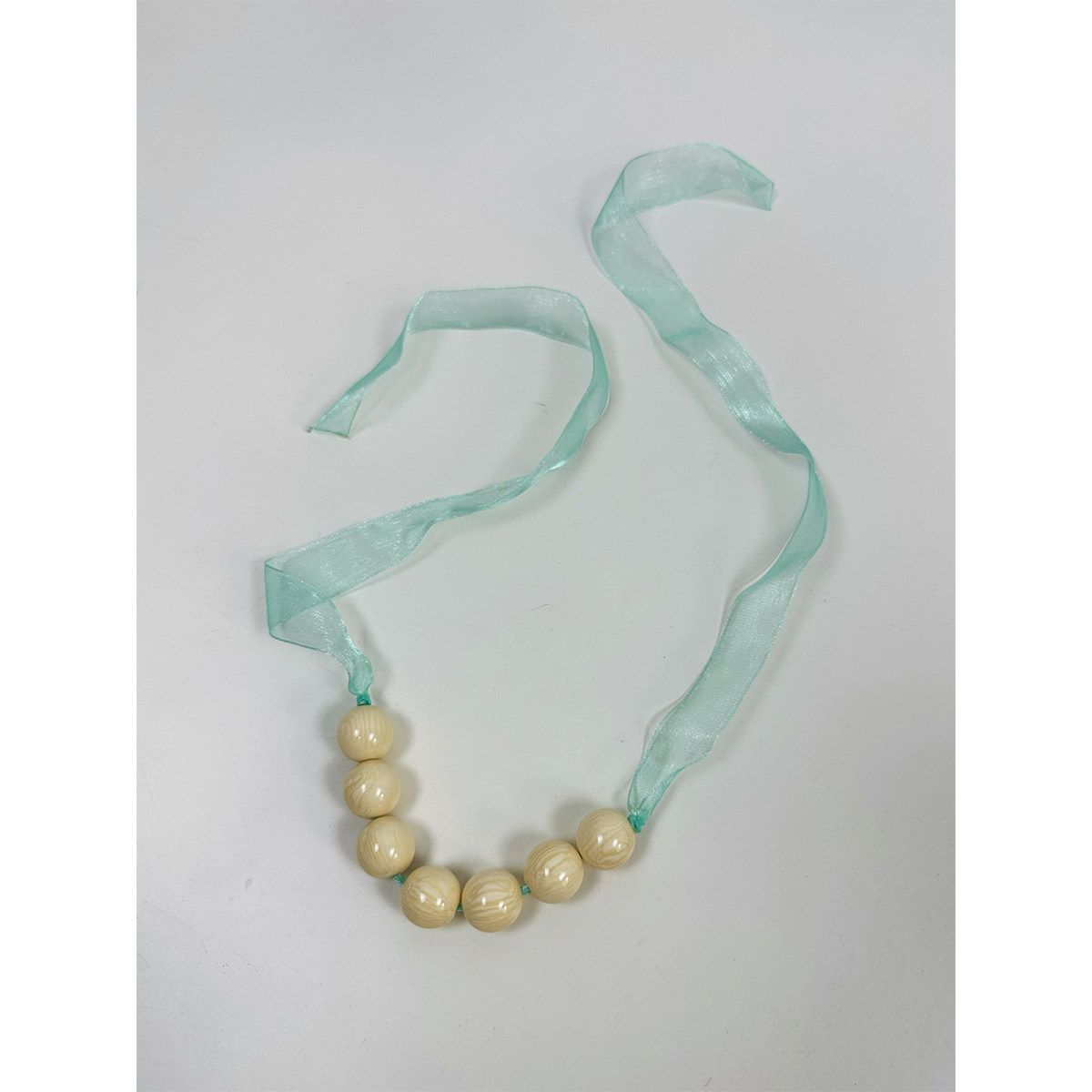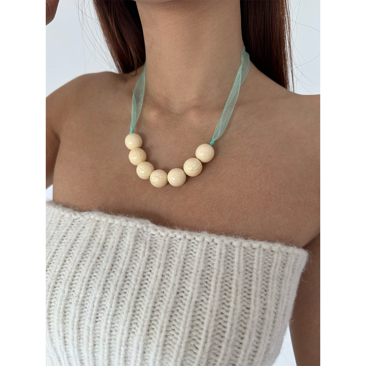 atmshop时髦个性可爱米白圆球珠串丝带项链ins少女高级百搭锁骨链