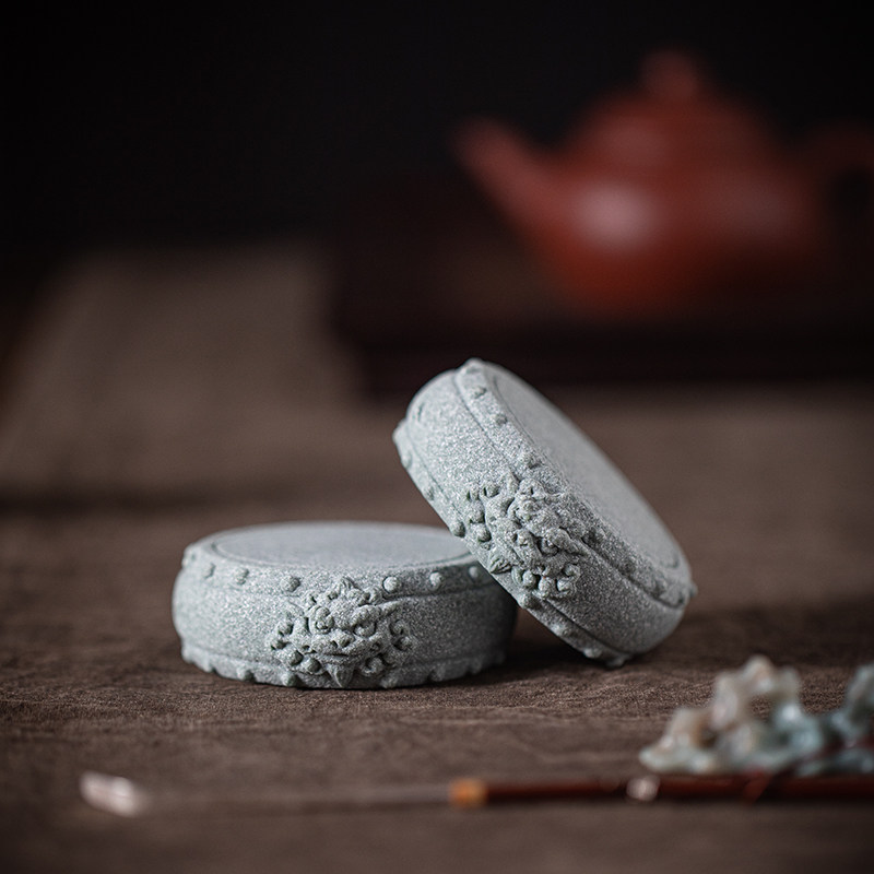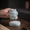 中式麒麟兽首石鼓盖置茶宠摆件垫底杯垫底座配件客厅桌面造景装饰