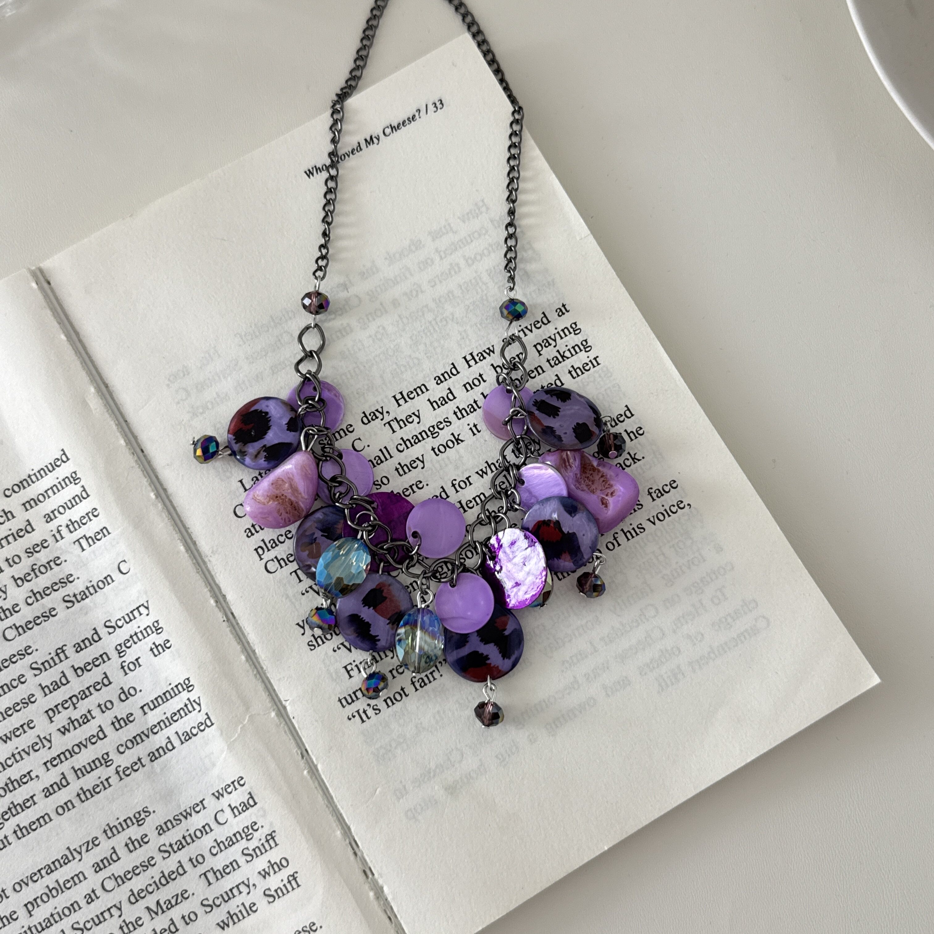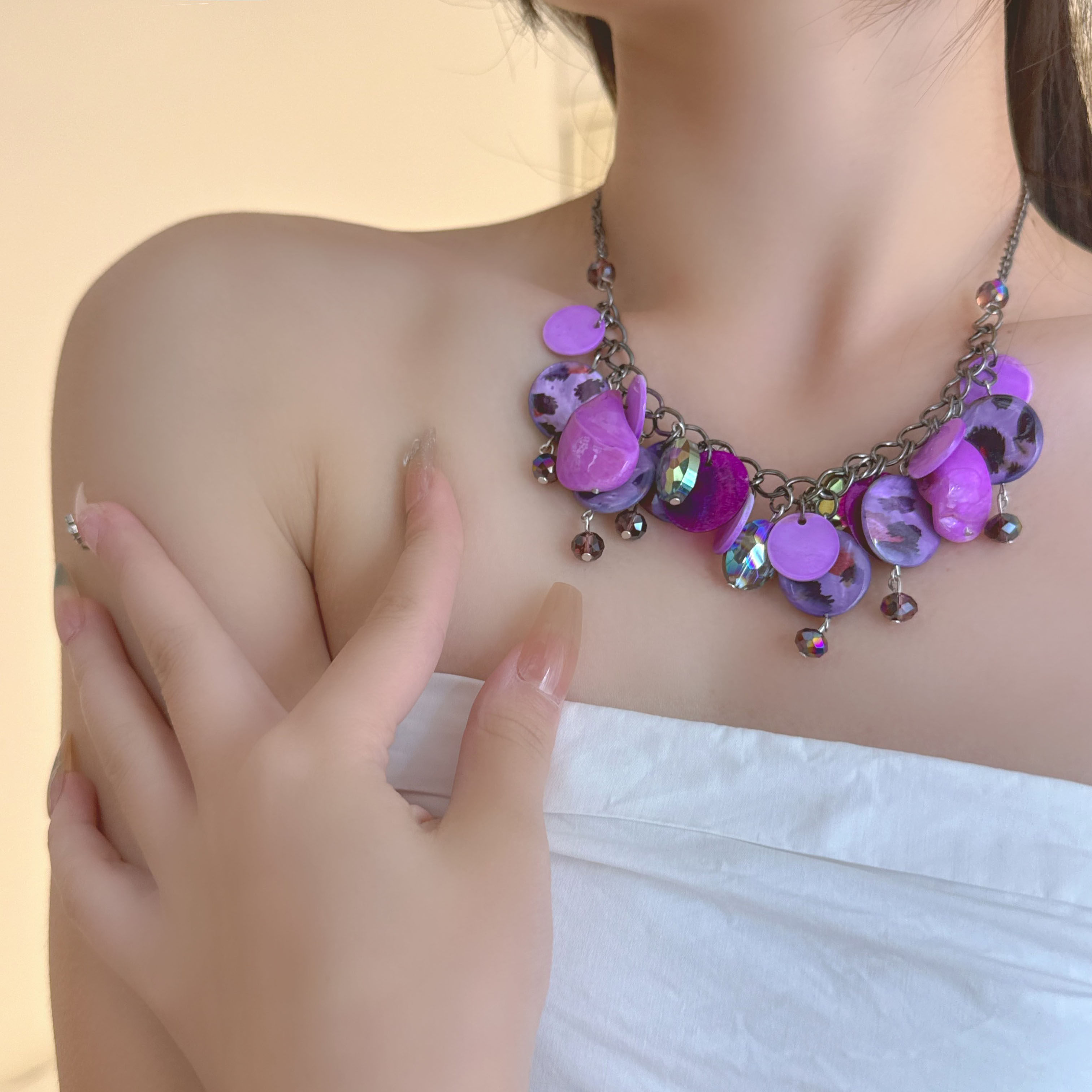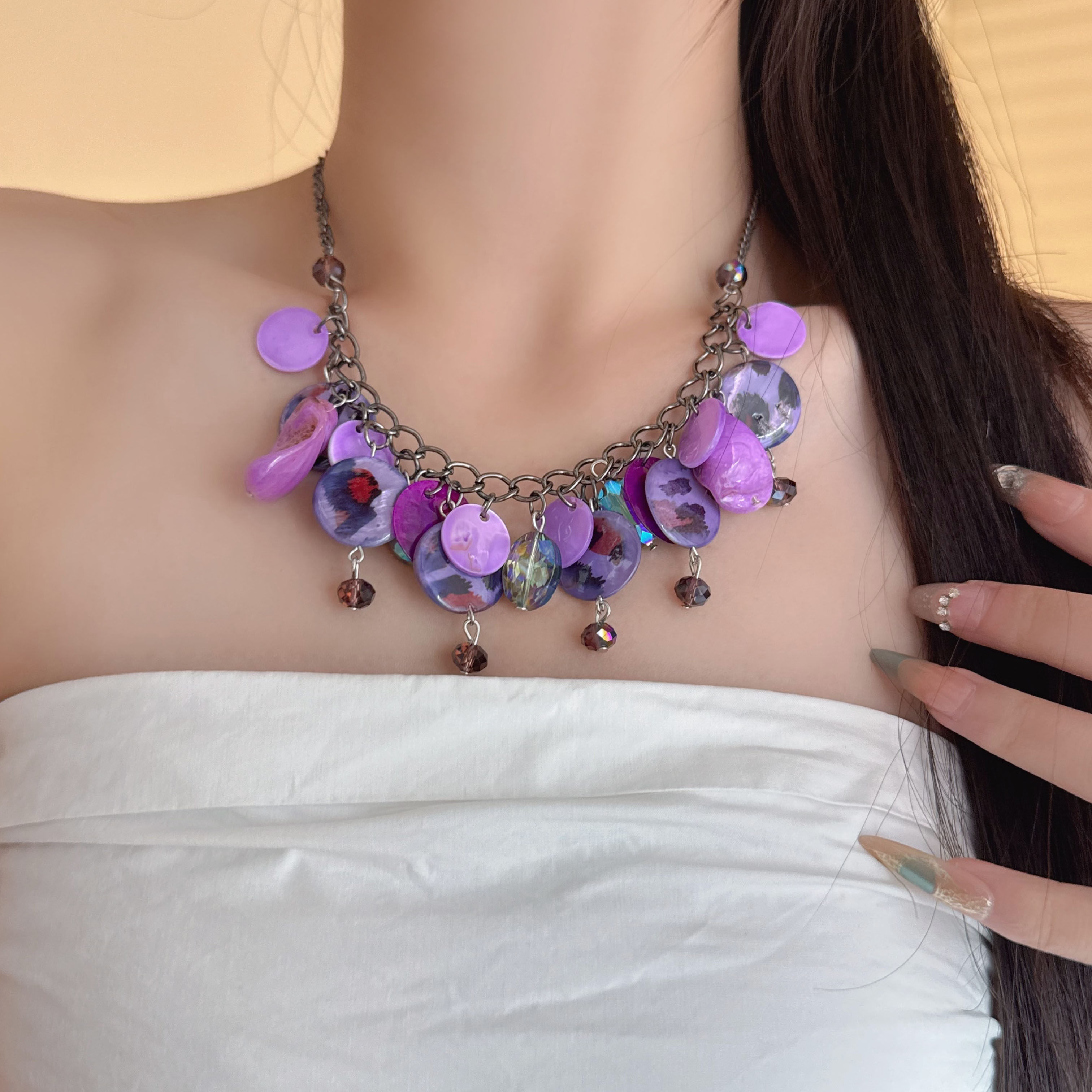 多巴胺紫色贝壳亮片流苏项链女配饰甜酷可爱小众超仙锁骨链颈链潮