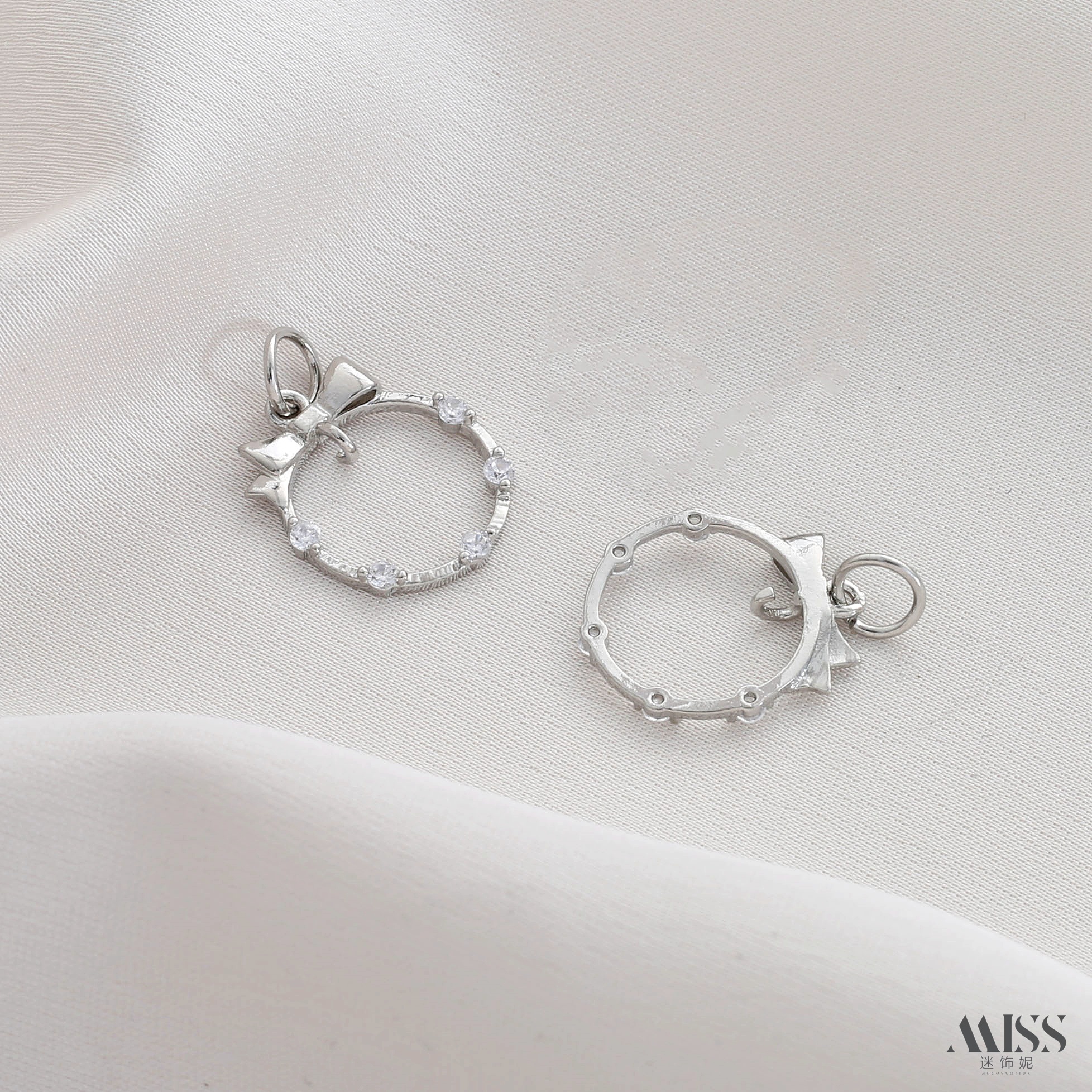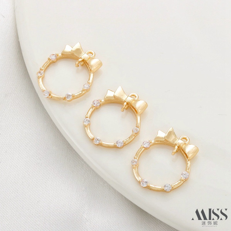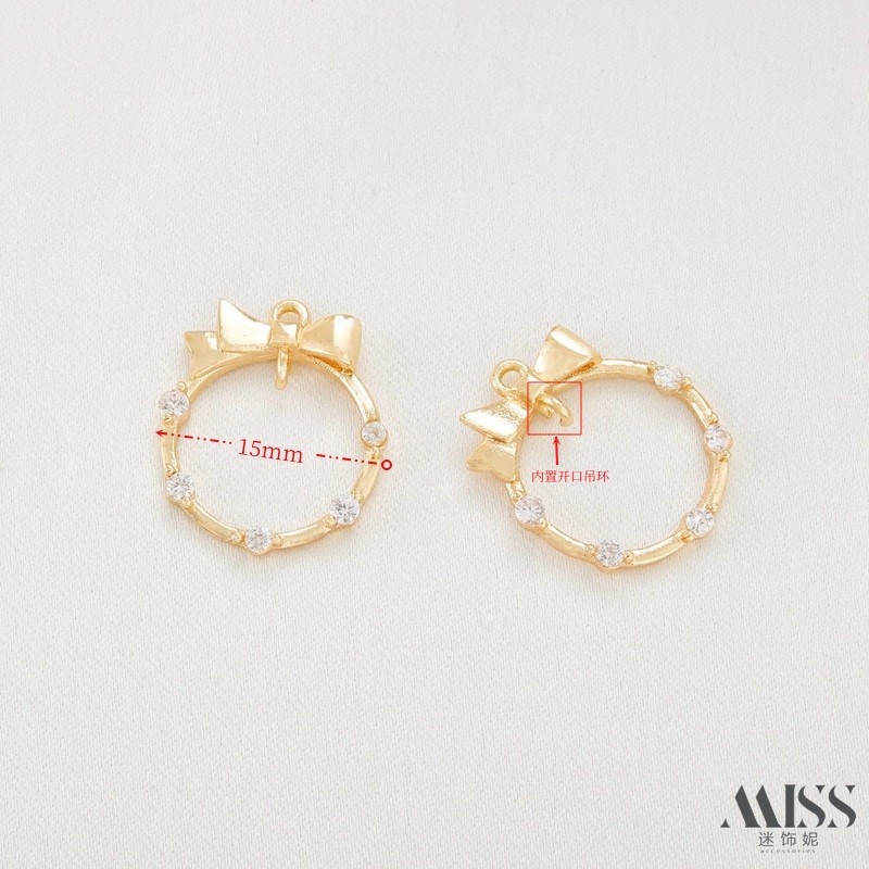14K包金保色蝴蝶结锆石圆环花环吊坠圣诞diy珍珠项链耳吊饰品配件