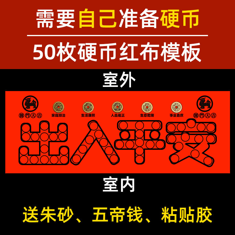 出入平安压门槛g红布模板专用门槛石过门石下压的88枚5角硬币自粘