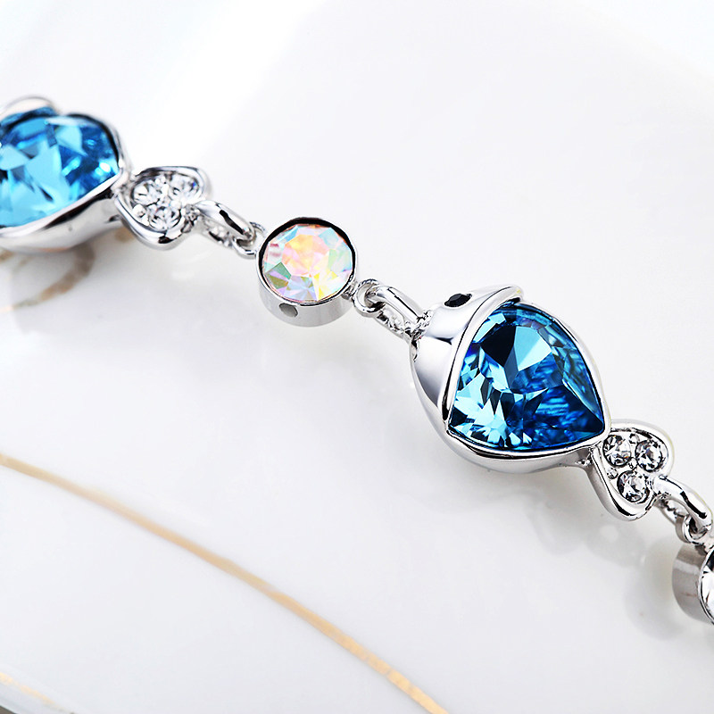 蓝色水晶手链女生高级感古风新款个性小鱼轻奢小众精致气质闺蜜