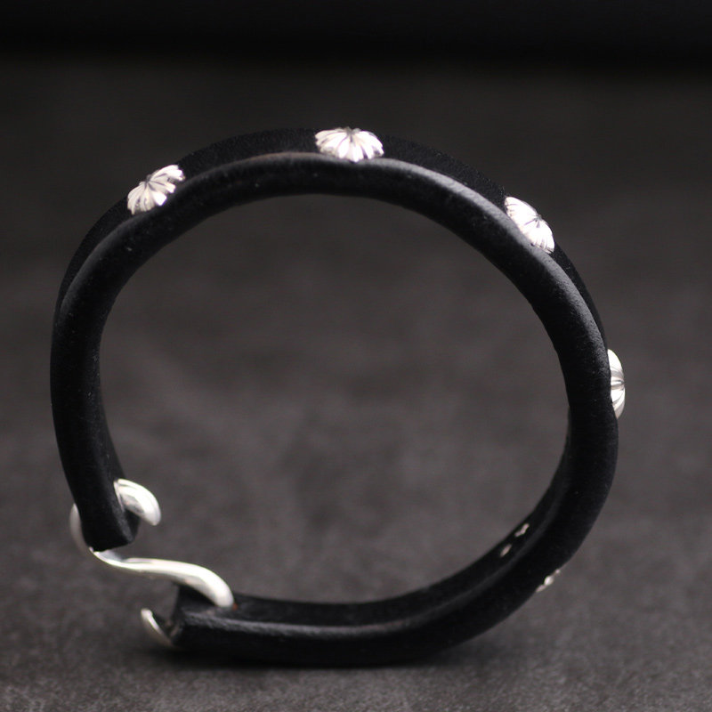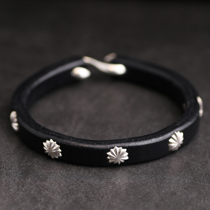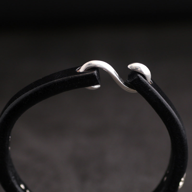 手工制作 高桥风格进口枥木鞍革植鞣革925纯银钩黑色皮手环