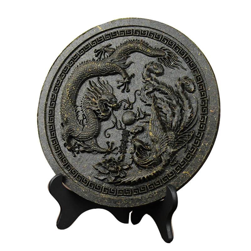 龙凤呈祥牛转乾坤普洱茶饼工艺创意茶叶店客厅书房摆件结婚小礼品