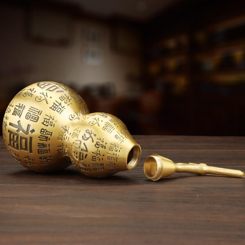 黄铜葫芦摆件开盖百福葫芦空心铜葫芦挂件五帝钱客厅酒柜装饰摆设