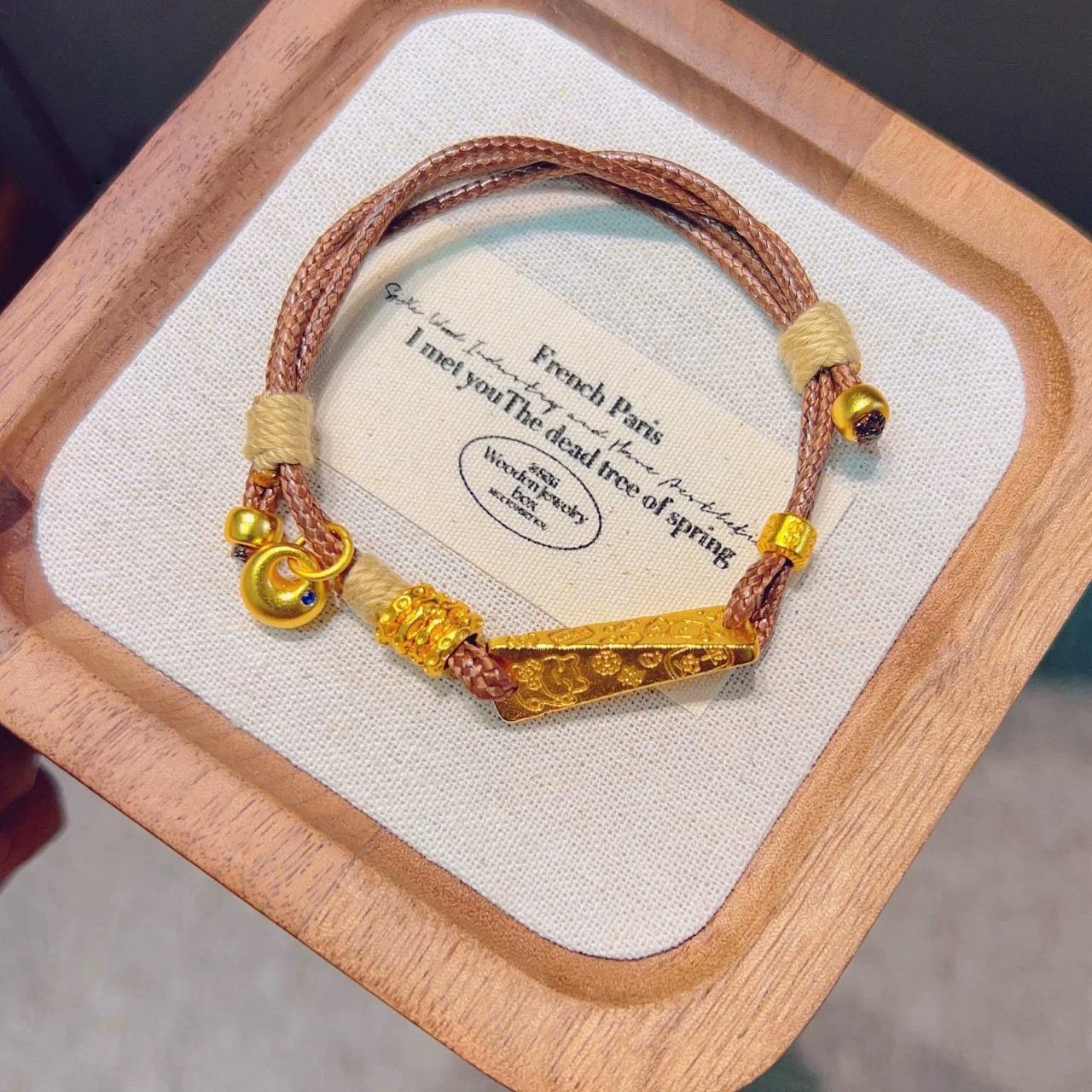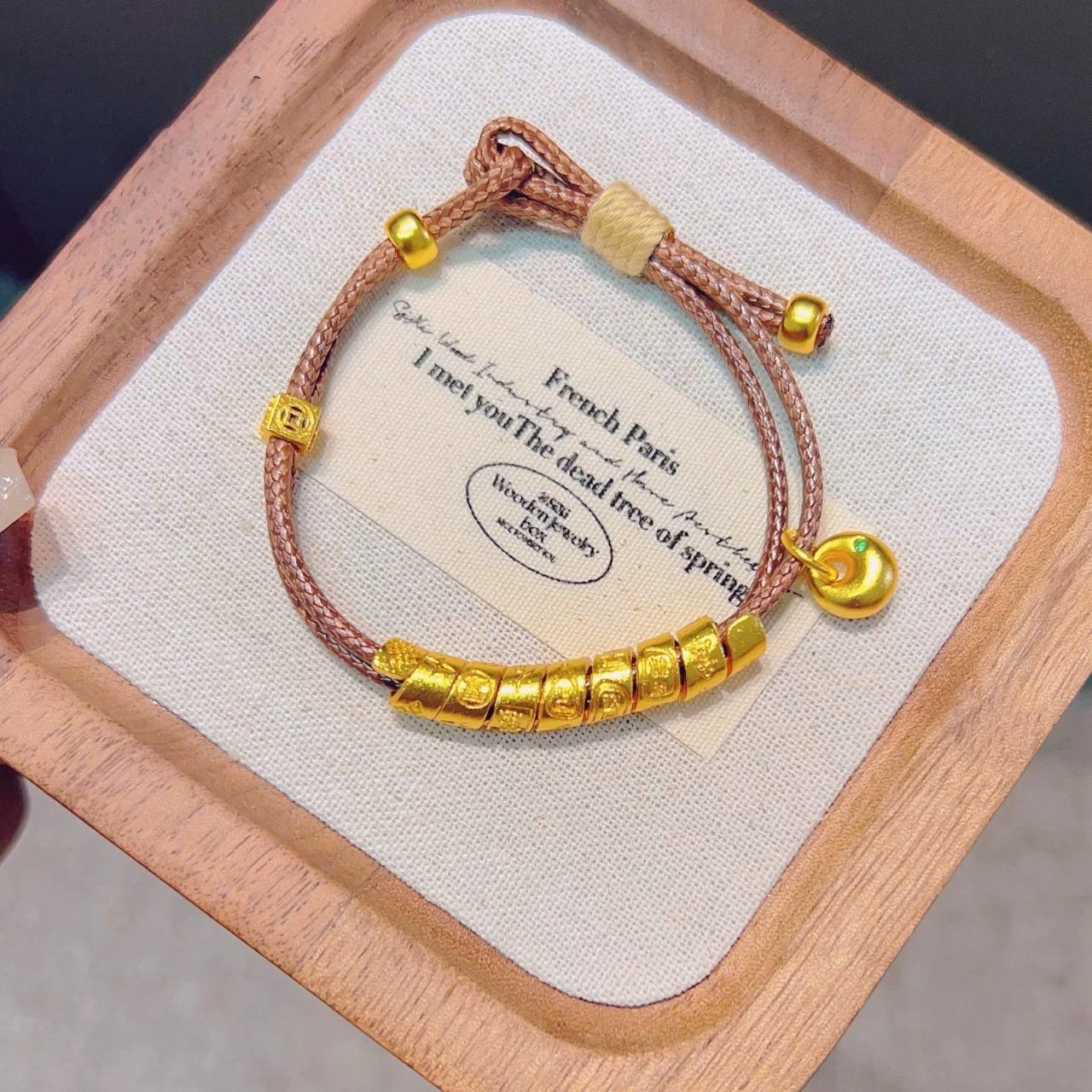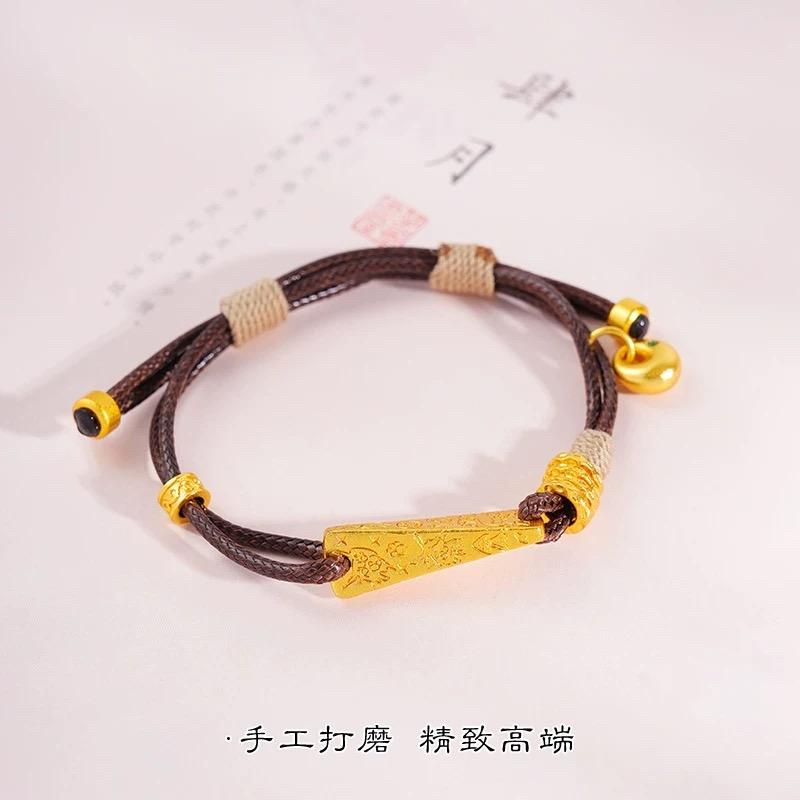 吉言三角锥沙黄金手链DIY手工编织扭扭棒金坨坨手牌复古皮手绳饰