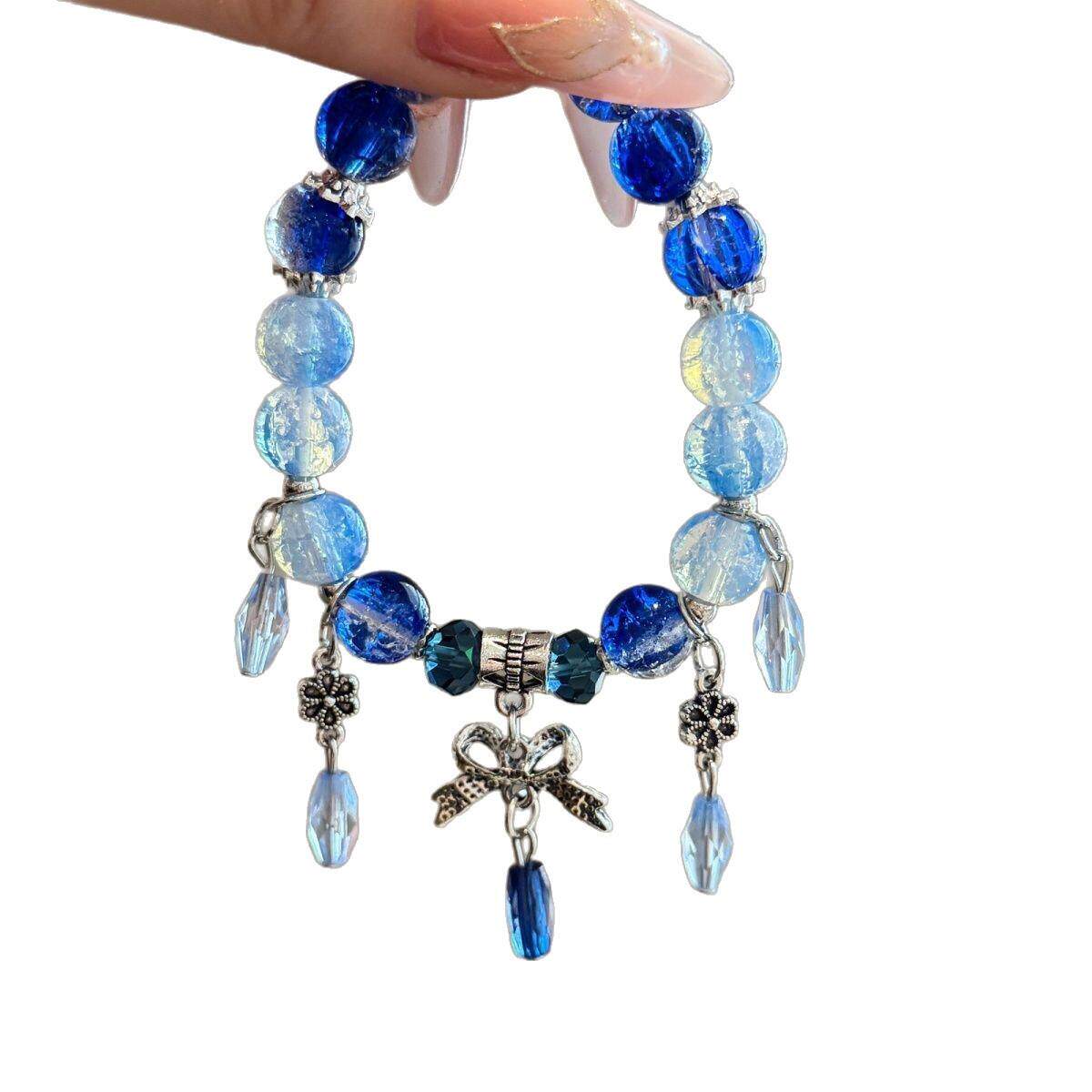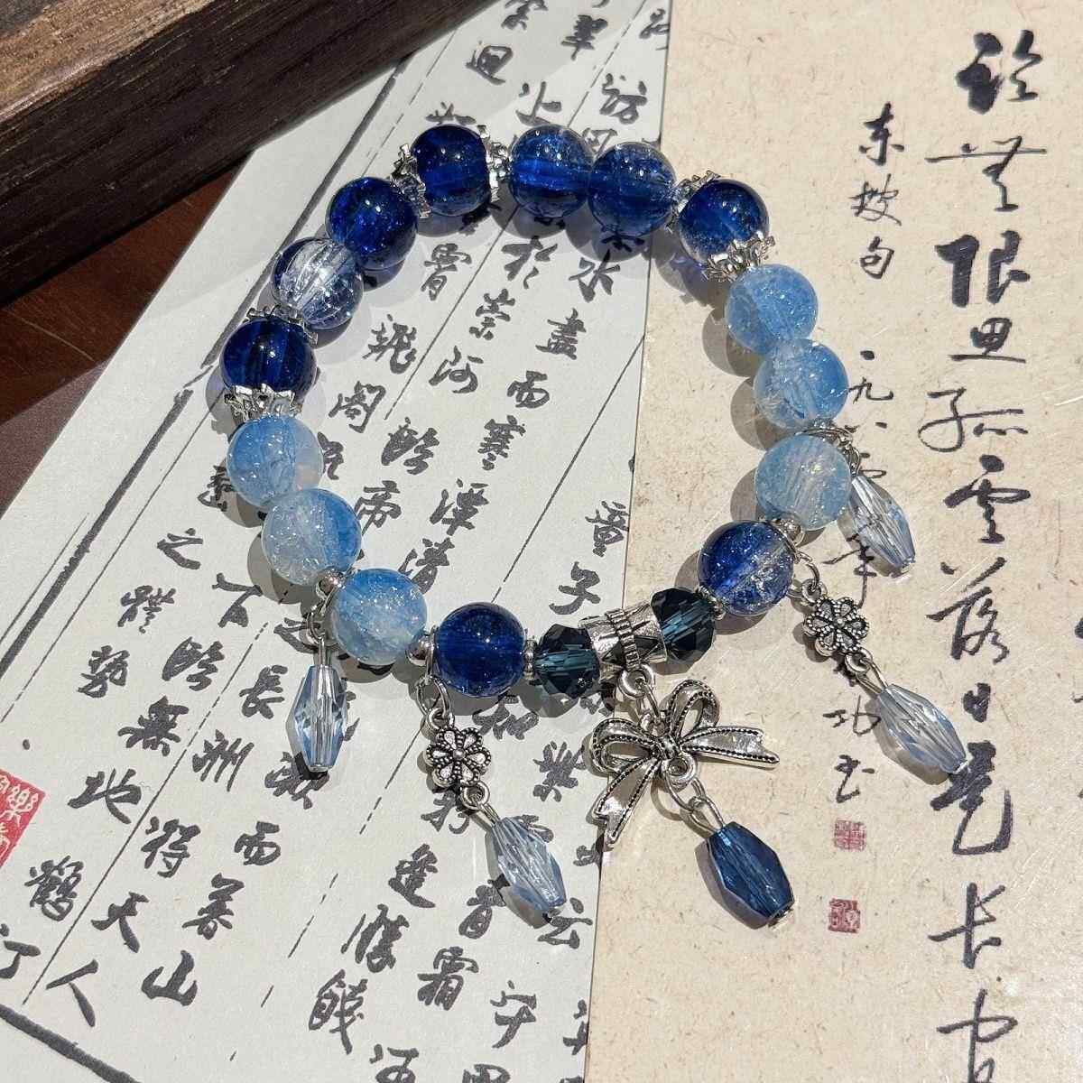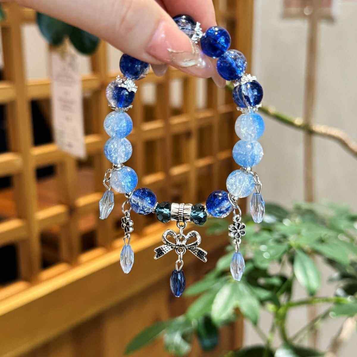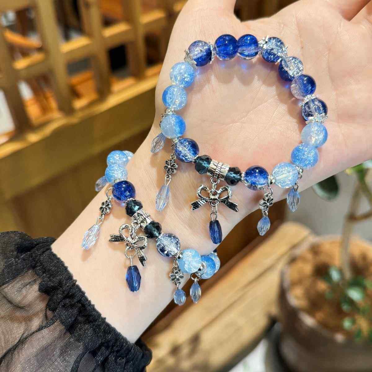 2026蓝色蝴蝶结水滴手链周边小众手串设计串珠甜美小红书推荐闺蜜