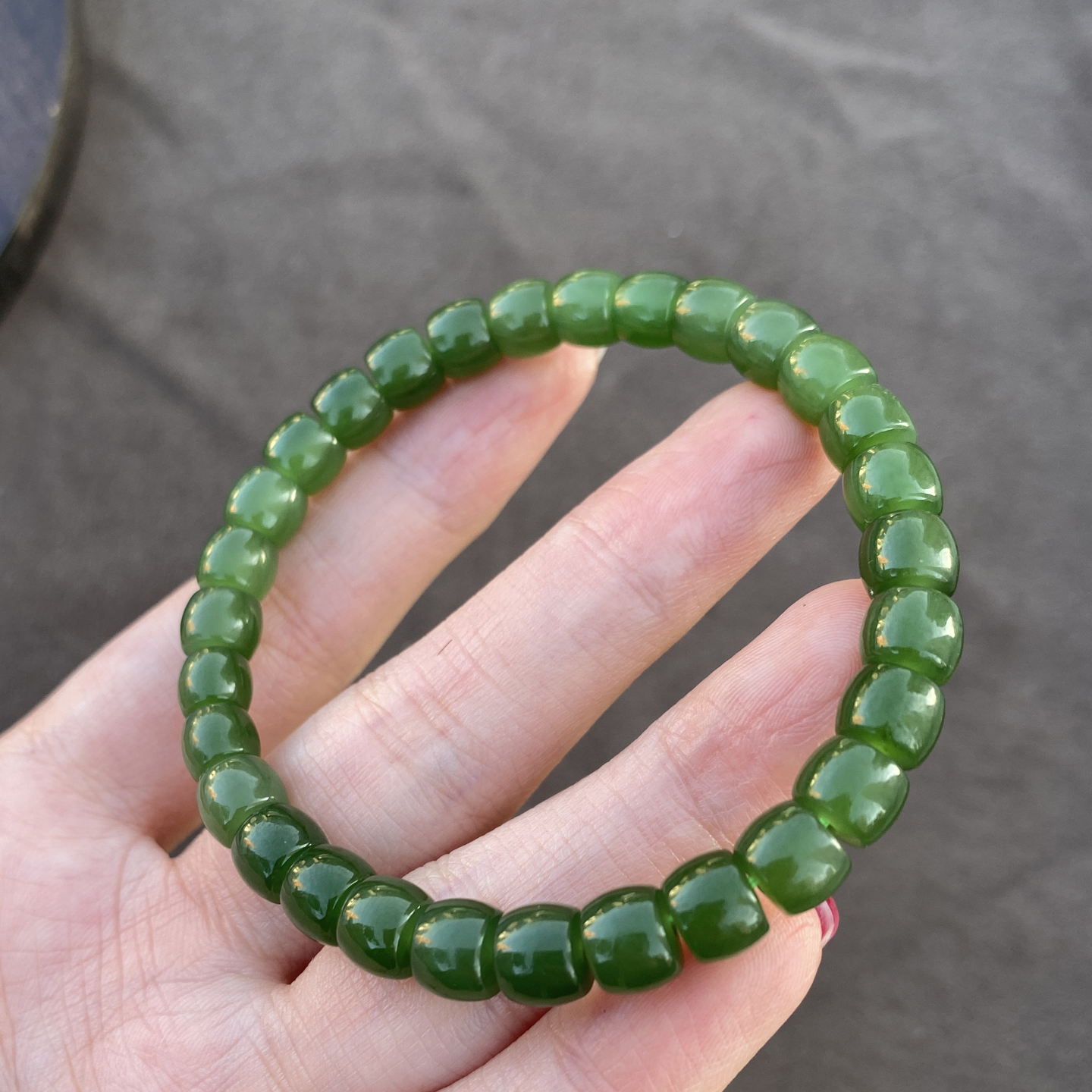 惊呆了方言和田玉俄罗斯细润老坑料阳绿色碧玉7mm直切手串手链A2
