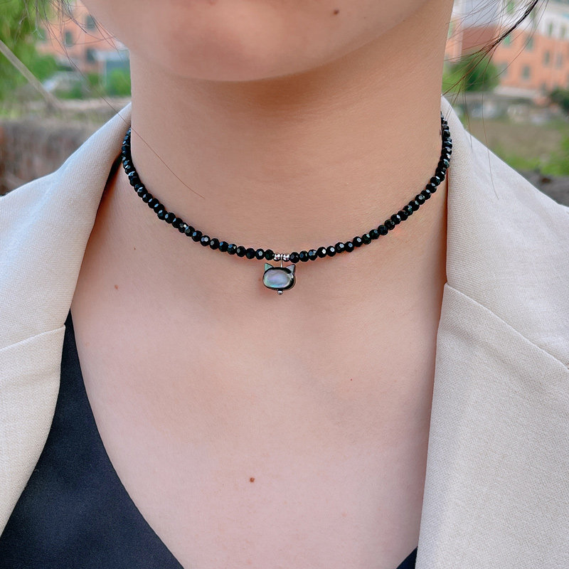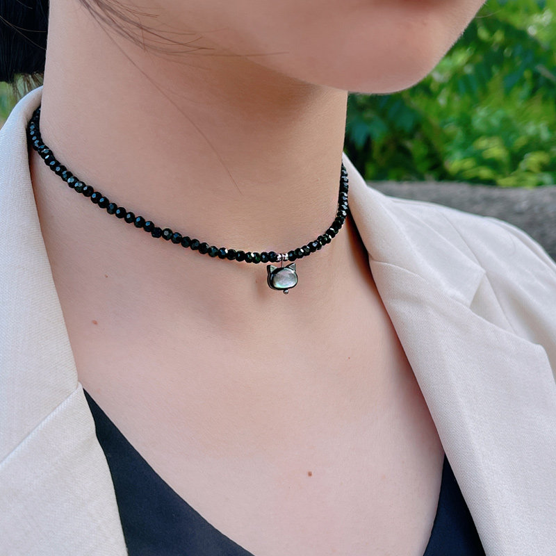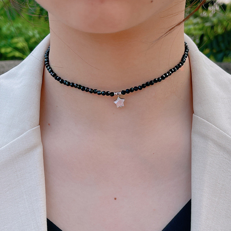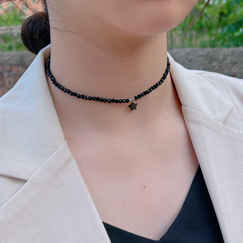 【掉色包退 】925纯银黑色水晶项链锁骨链简约气质高级感颈链项坠